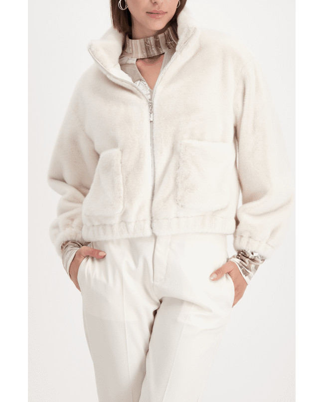 Kort kunstbont jasje van Monari met opgestikte zakken