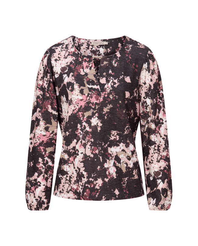 Krystel - Damestop van Dreamstar met allover abstracte print, lange mouwen en een ornament aan de ronde hals met V-uitsnede