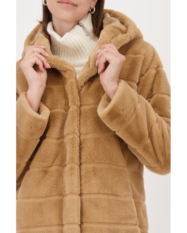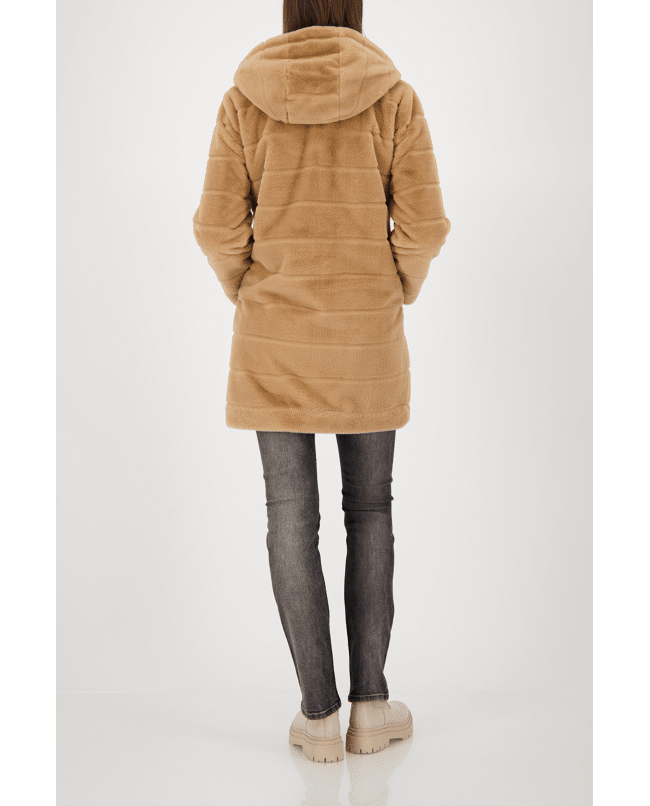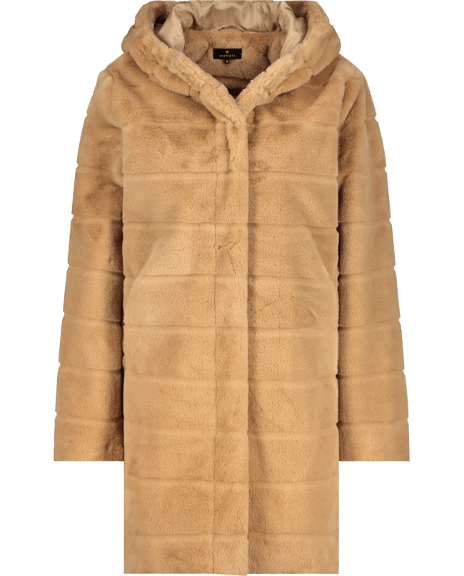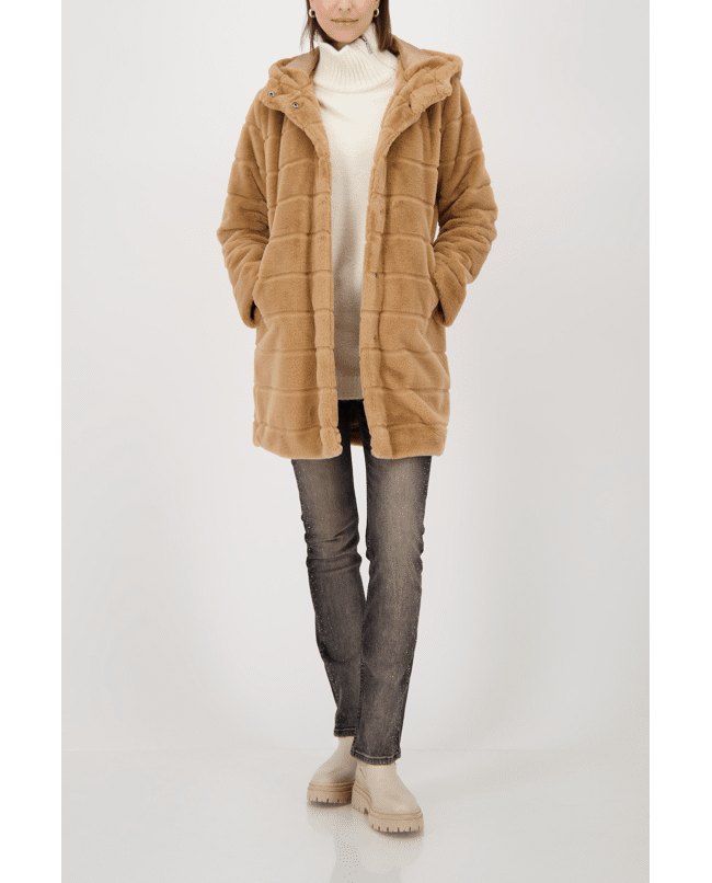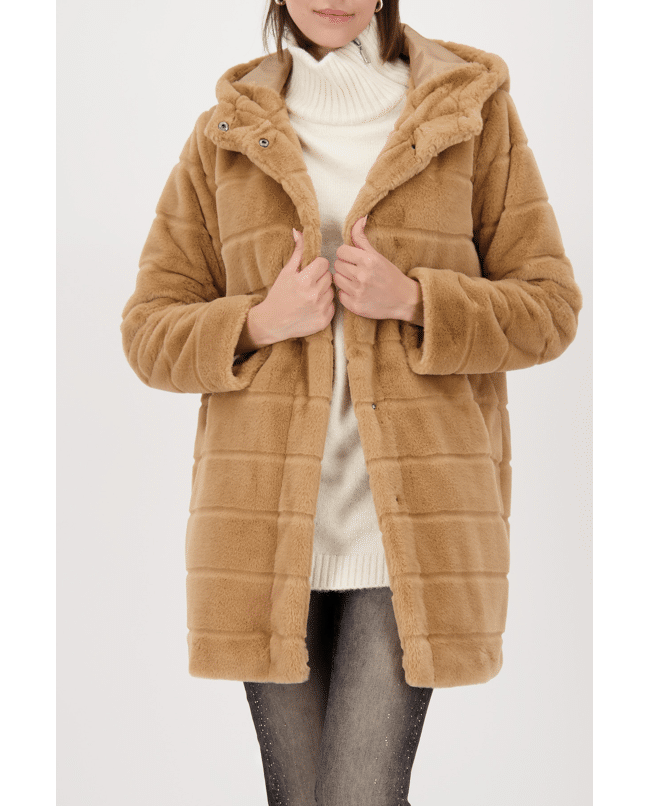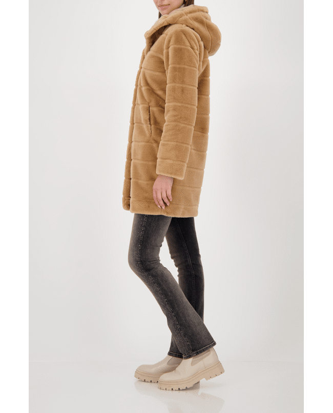 Kunstbont damesjas van Monari met capuchon en knoopsluiting