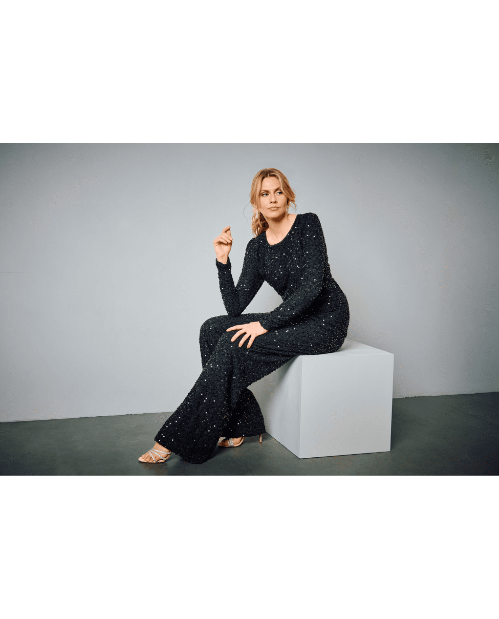 De subtiele stretch zorgt voor comfort, terwijl de pailletten een stijlvolle sparkle geven – zonder over the top te zijn.
