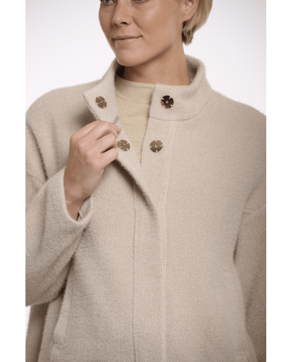 Levin – Kort damesjasje van Rino&Pelle met trekkoord onderin de band, lange mouwen, opstaande kraag, steekzakken en een verborgen drukknoopsluiting