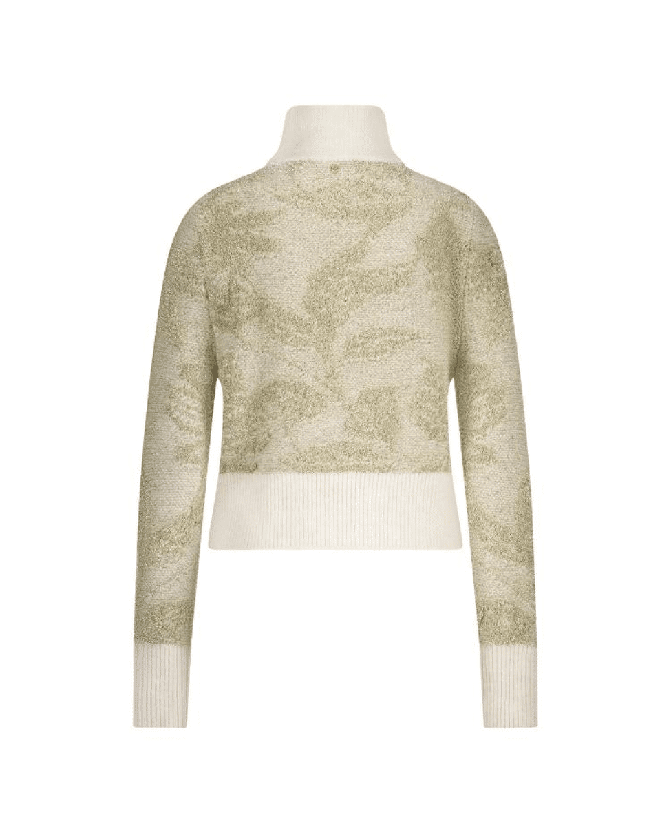 De hoge col en glinsterende draad maken deze trui perfect voor dagen waarop je nét iets extra’s wilt. Mooi te combineren met een zandkleurige broek of rok.