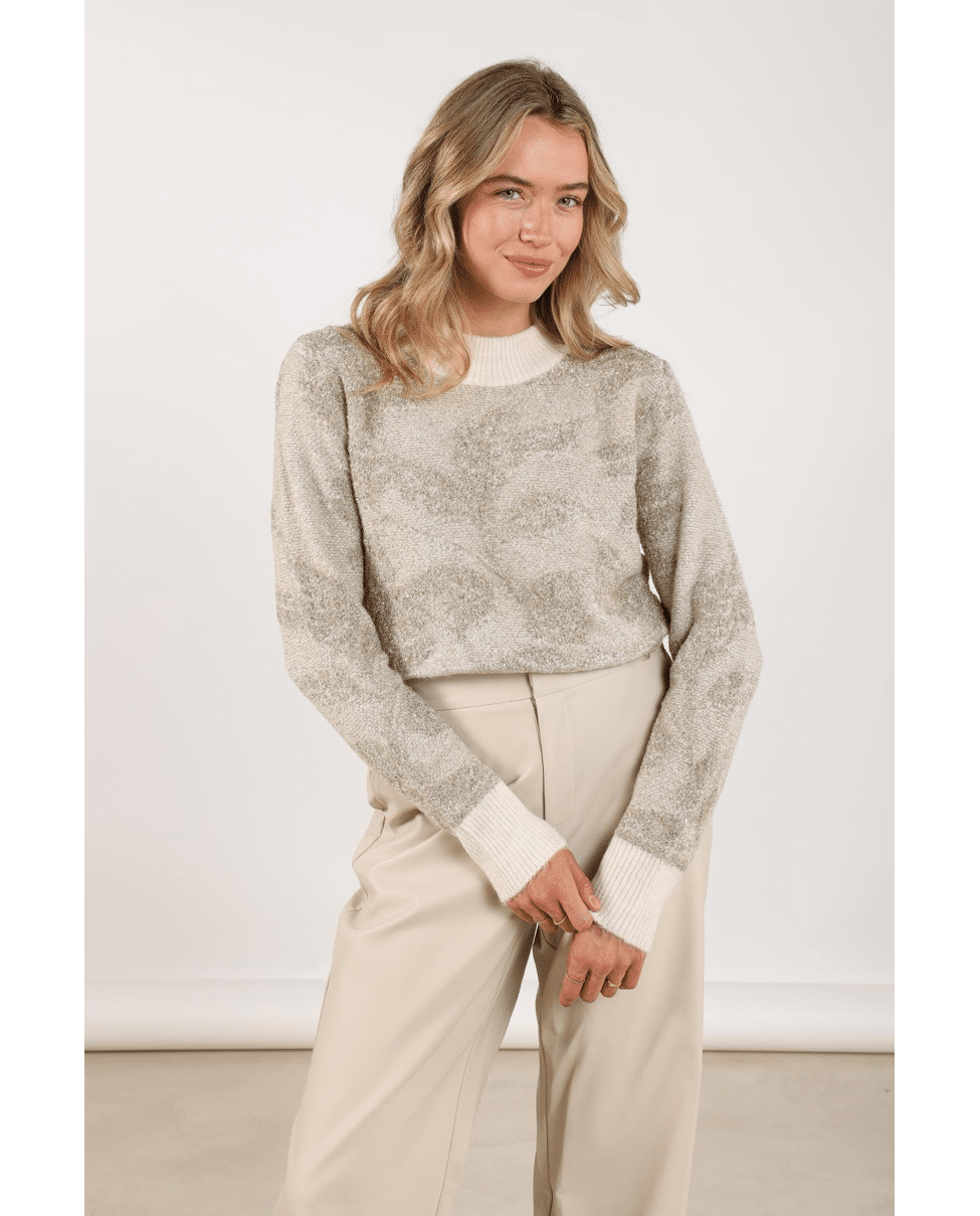 Lia Pullover Lurex – Gebreide damestrui van Nukus met glanzende lurex print, lange mouwen en hoge halslijn