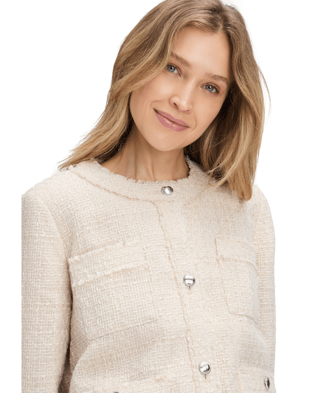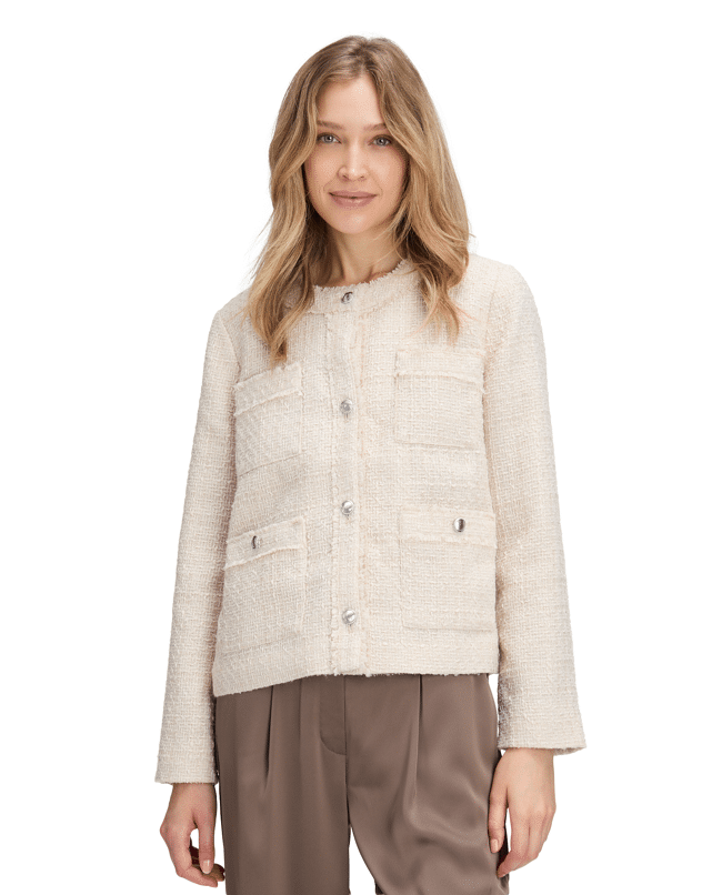 Licht getailleerd dames jasje van Betty Barclay met ronde hals, lange mouwen, opgestikte zakken en knopen
