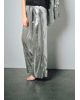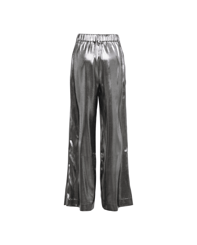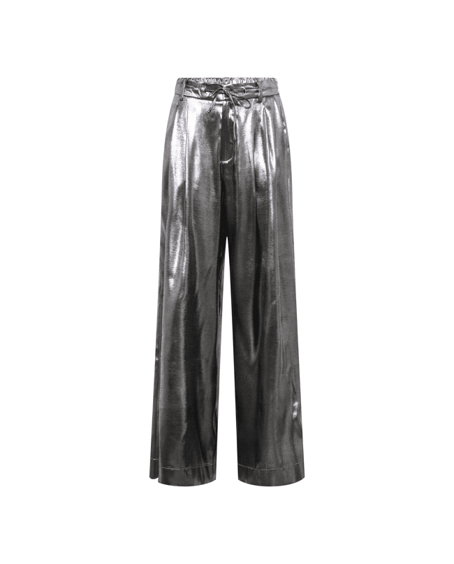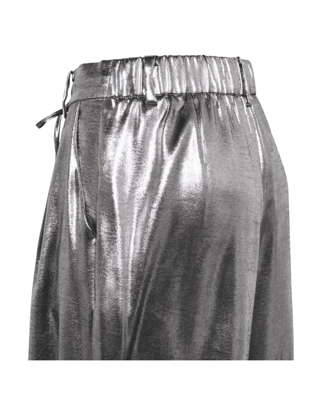 LONDON - Damesbroek van &Co Woman met feestelijke glans, wijde pijpen en tailleband met elastiek en trekkoord
