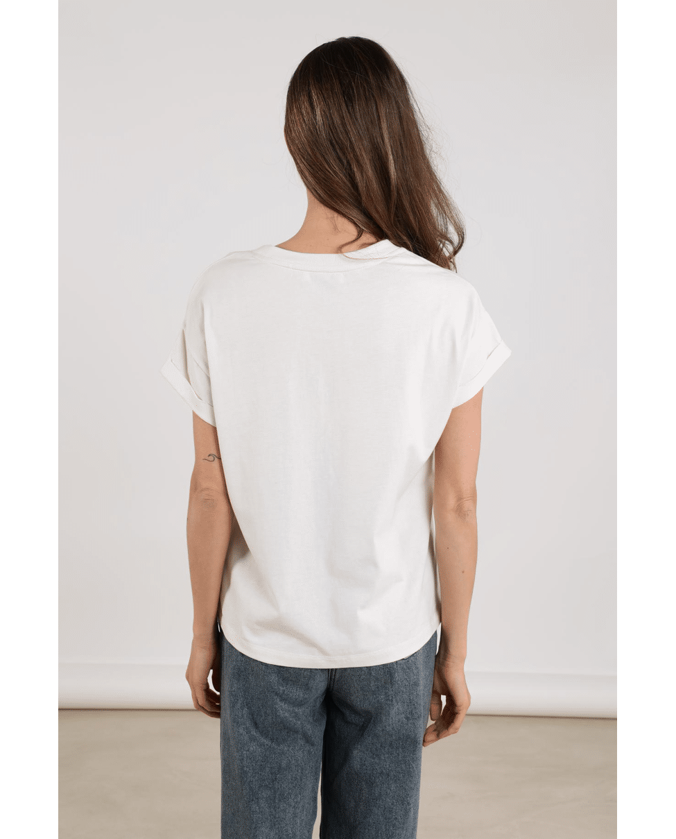 Het Lou shirt is een stijlvolle basic met een krachtige boodschap. Dit off white t-shirt is gemaakt van zacht katoen en heeft een regular fit. De gouden letters met het woord “muse” geven het shirt een trendy en vrouwelijke uitstraling. Perfect om casual te dragen met een jeans voor een effortless everyday look.