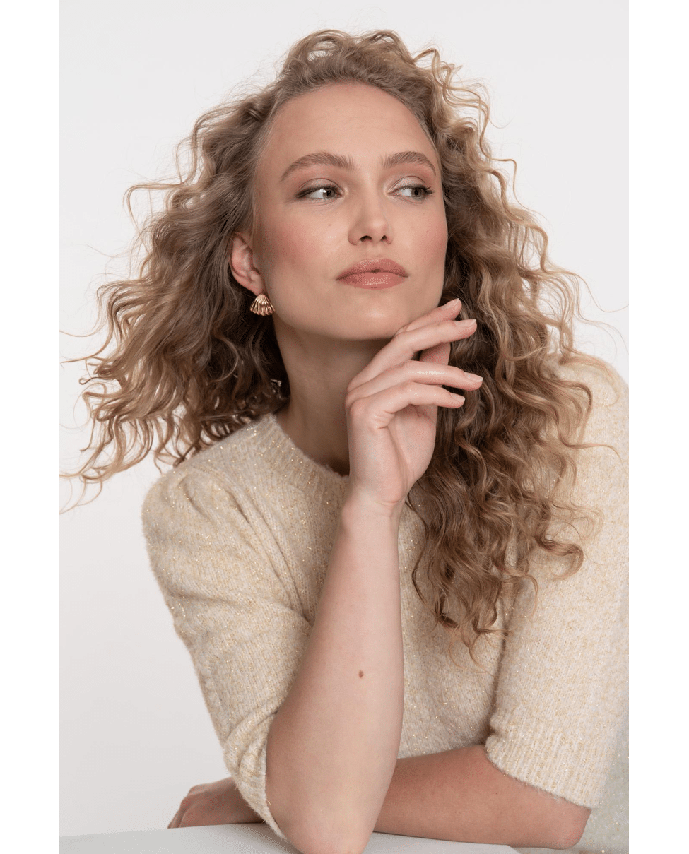 • Fijngebreide stof met goudkleurige lurex
