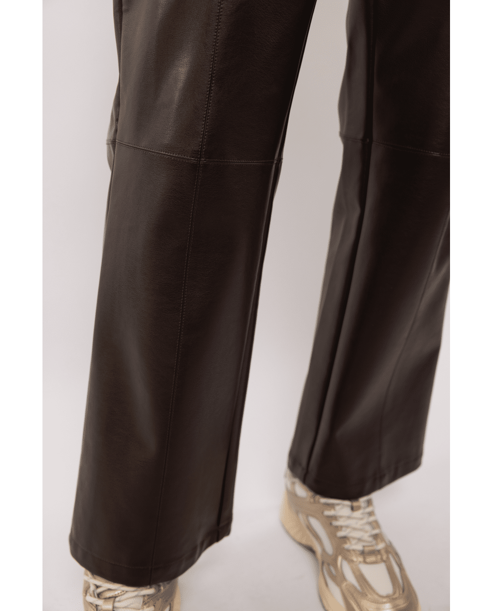 De Madonna pants is een coated broek in een diepe chocoladebruine kleur. Perfect voor wie zoekt naar een stoer én stijlvol item voor het najaar.
