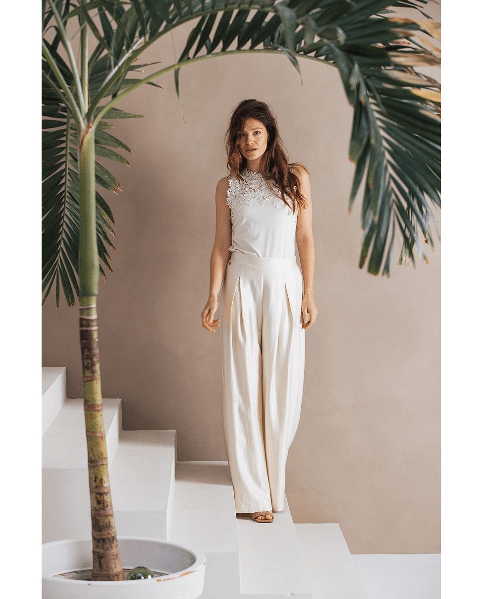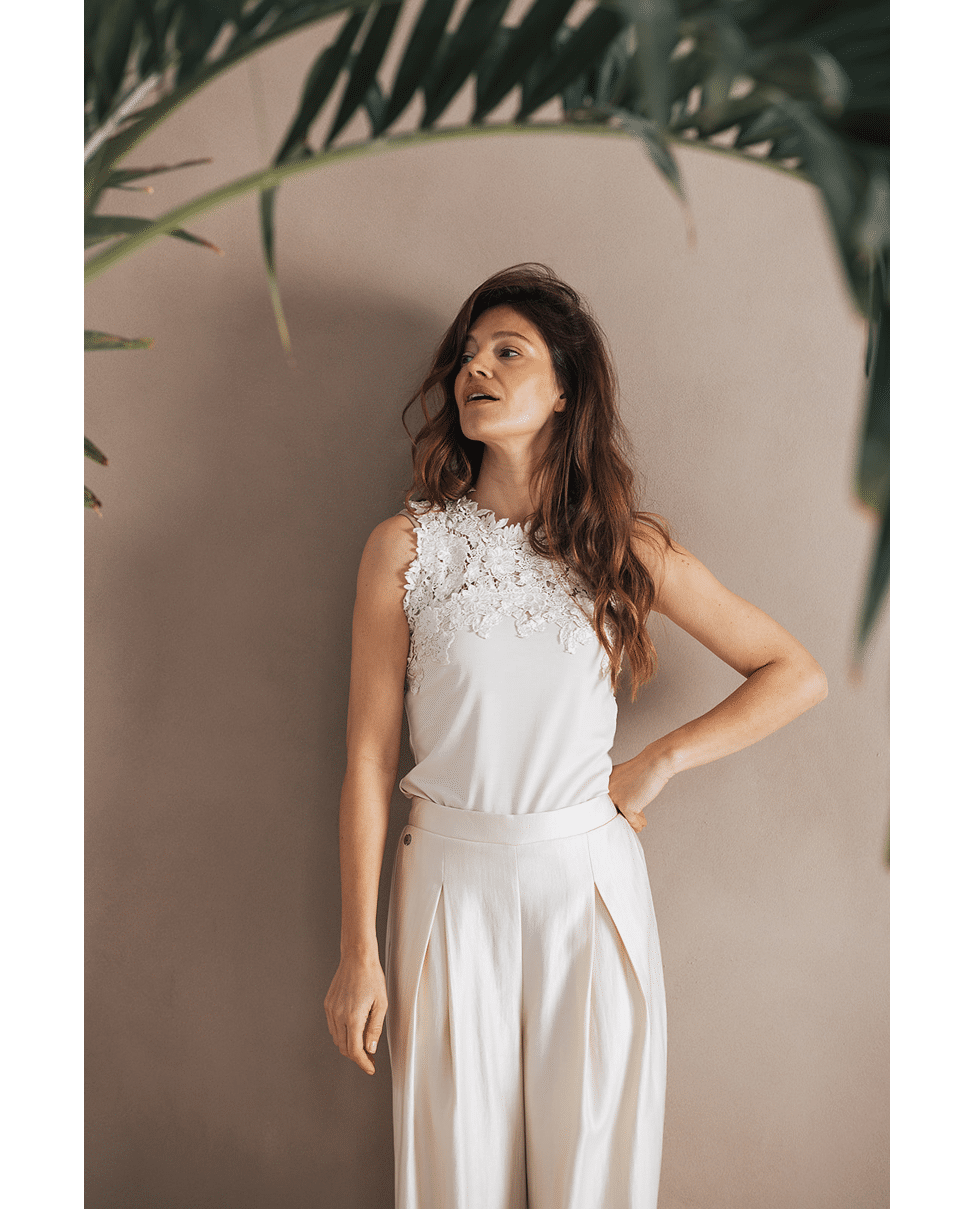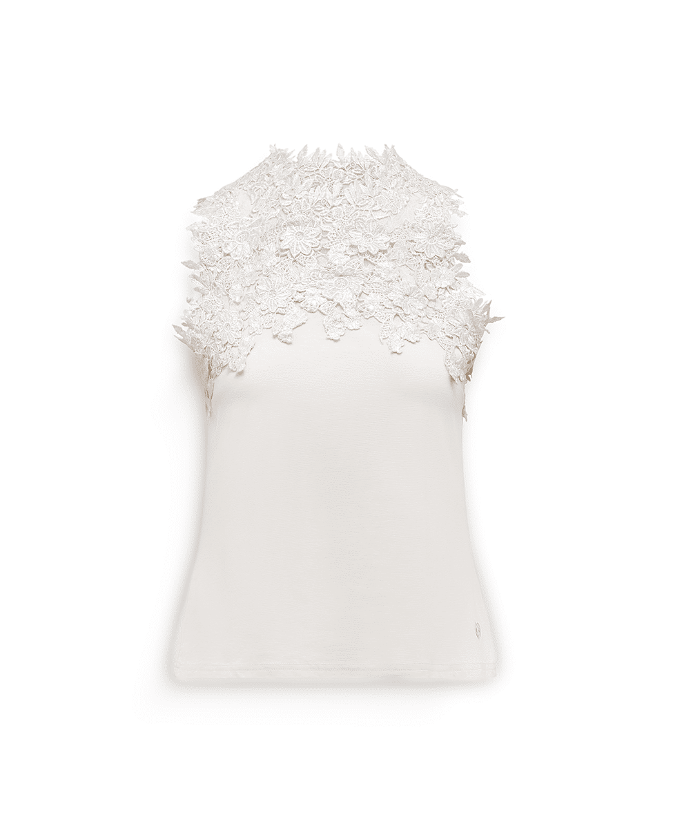 Margo – Mouwloze top van Label DOT met bloemenkant