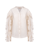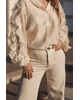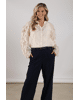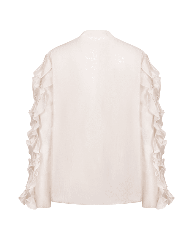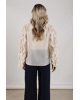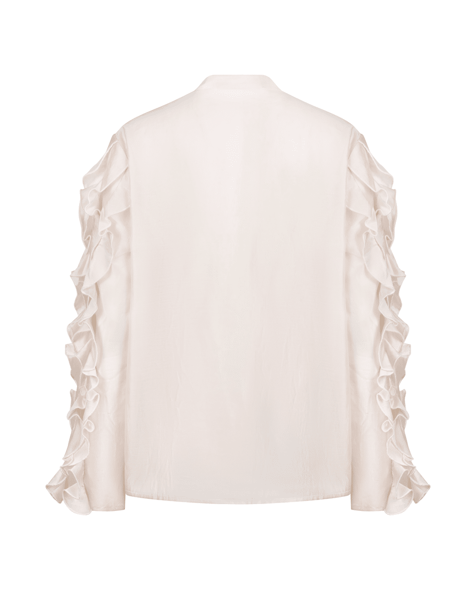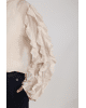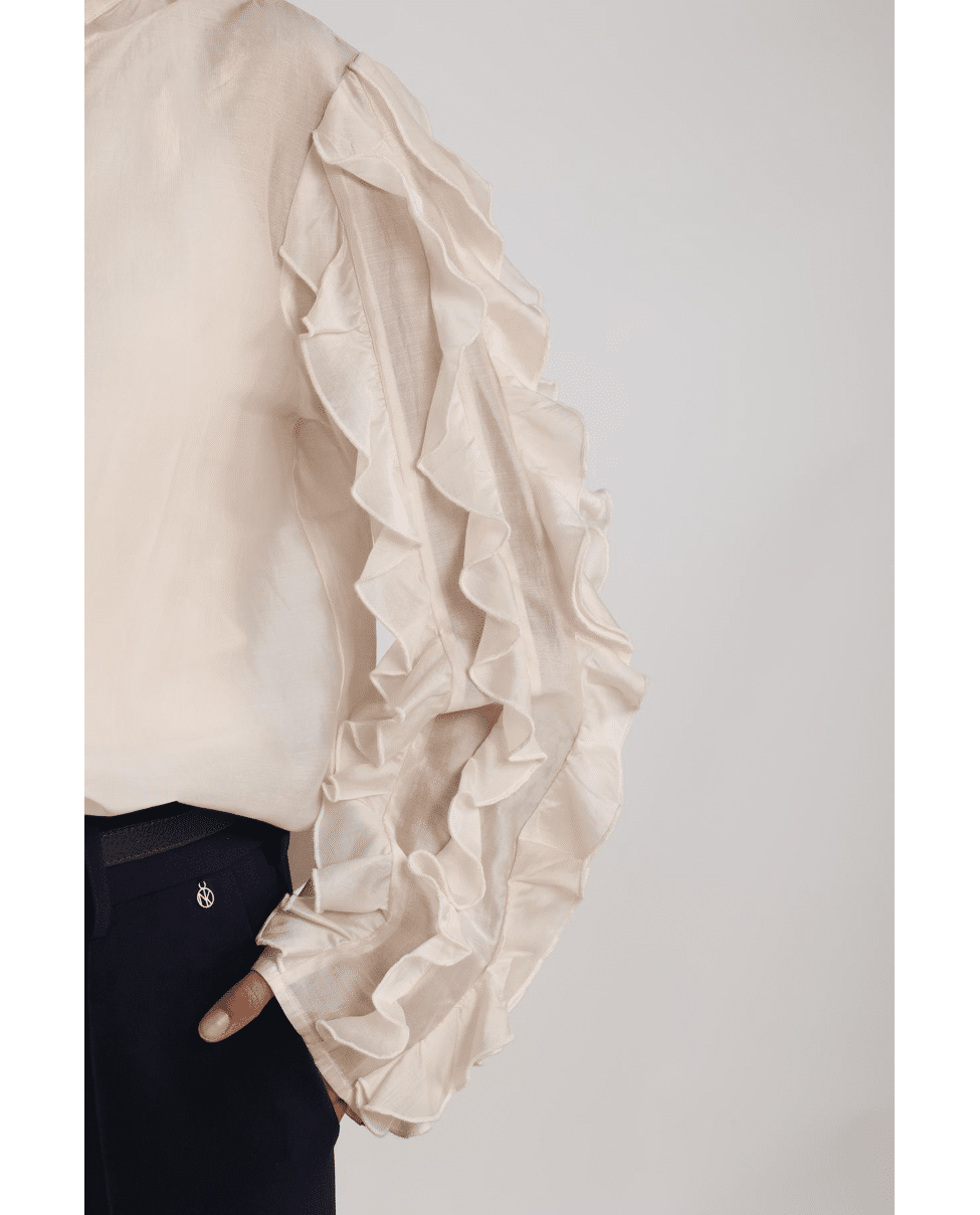Een vrouwelijke blouse met flair: de Margriet blouse is licht en luchtig, met opvallende ruches langs de mouwen. Gemaakt in een offwhite tint die makkelijk combineert en ideaal is voor lente en zomer.