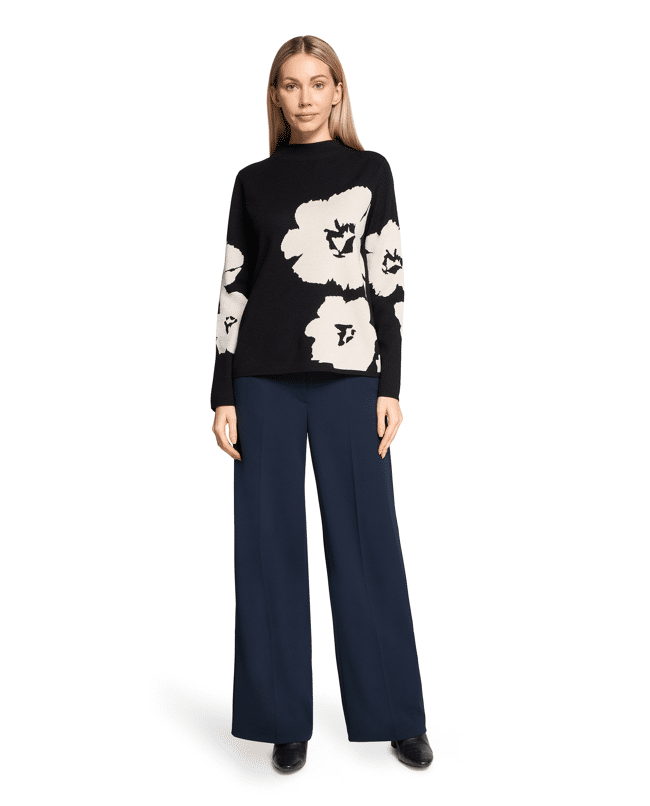 Marlène Dietrich damesbroek van Betty Barclay met zijzakken, hoge taille en wijde pijpen