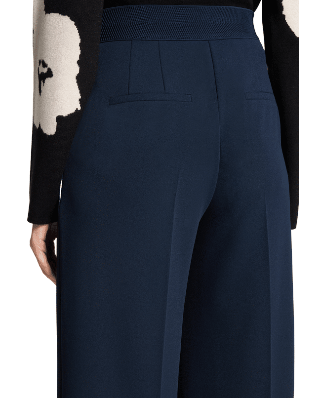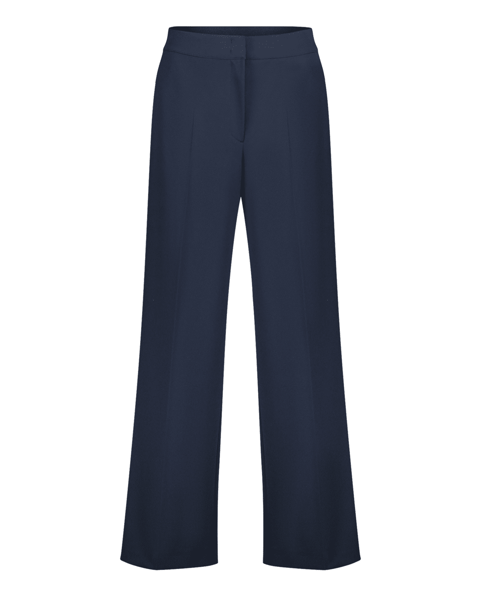 Een elegante klassieker met moderne flair. Deze broek met hoge taille en wijde pijpen geeft je outfit direct een krachtige uitstraling.