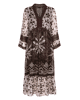 Dit is een maxi damesjurk met batik palmprint van Grace, uitgevoerd in warme bruintinten met subtiele crèmekleurige accenten. De luchtige chiffonstof en de V-hals geven de jurk een elegante, bohemian uitstraling. Perfect voor zomerse dagen, vakanties of een stijlvolle avondlook.