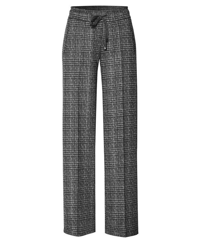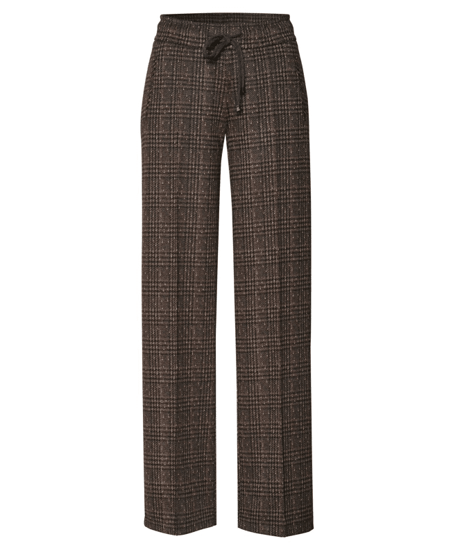 De May_452 van Rosner combineert zachte jersey met een moderne wide leg. Het ruitpatroon geeft de broek een grafische, stijlvolle uitstraling.