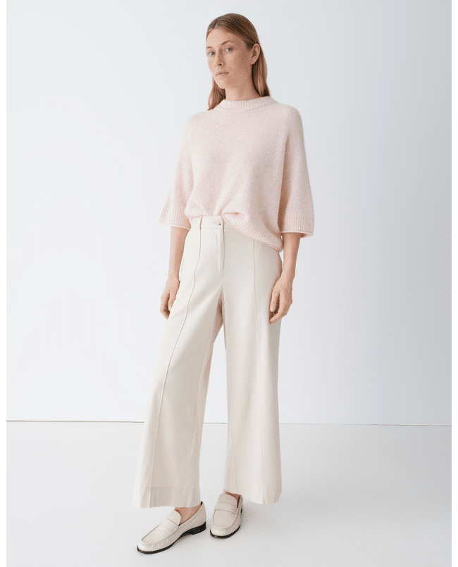 De mix van ademend linnen en zacht katoen voelt comfortabel aan en oogt tegelijk verzorgd. Een relaxte city broek die je makkelijk chic of casual draagt.