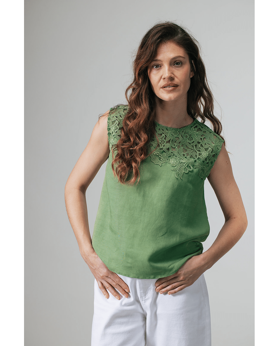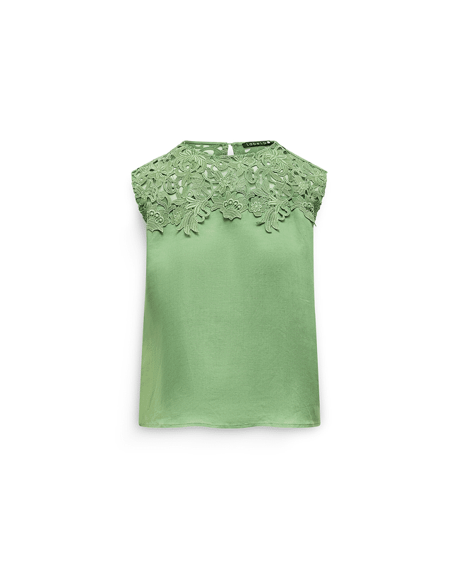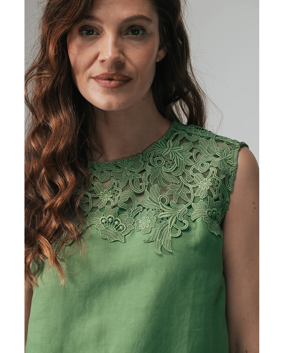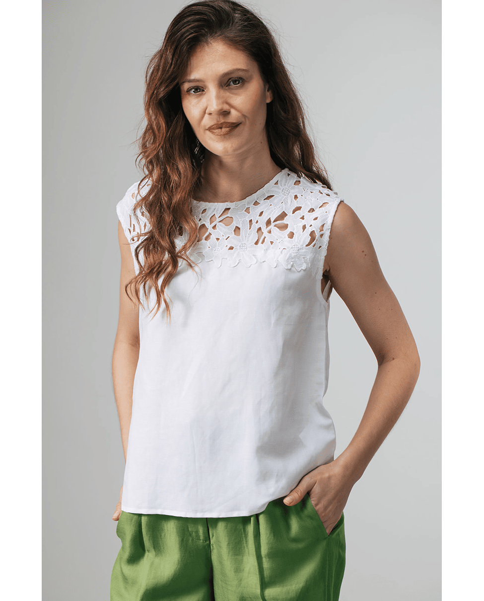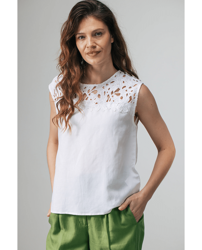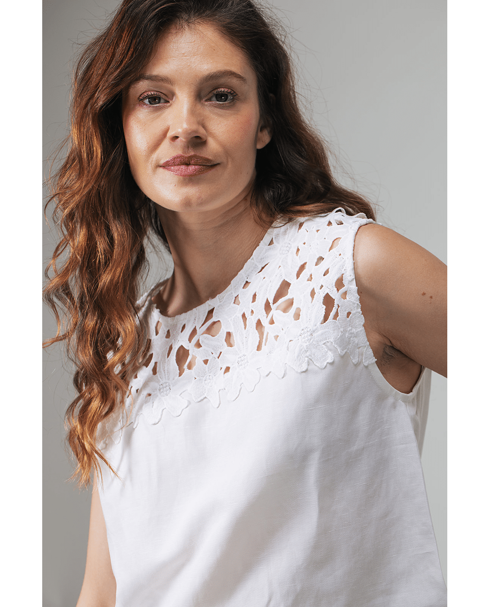 Merel Lace – Mouwloze top van Label DOT met broderie Anglaise