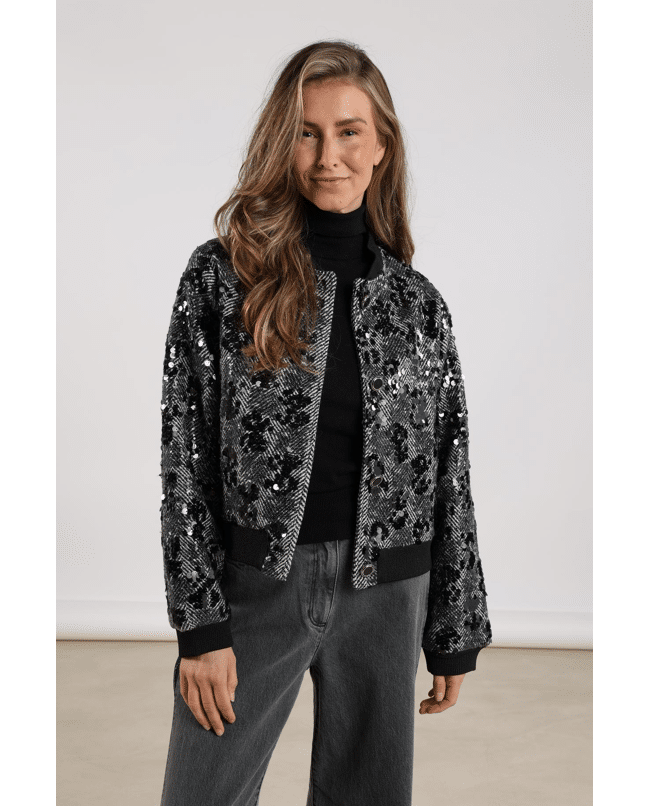 Het Mia Jacket Paillet brengt warmte en glamour samen. De subtiele paillettenprint maakt dit jasje feestelijk én stijlvol, ideaal voor de herfst en winter.