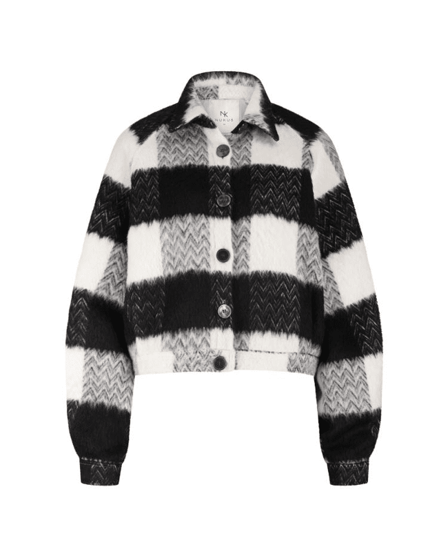 Milou Jacket – Damesjasje van Nukus met zigzag print, knoopsluiting, klassieke kraag en lange mouwen