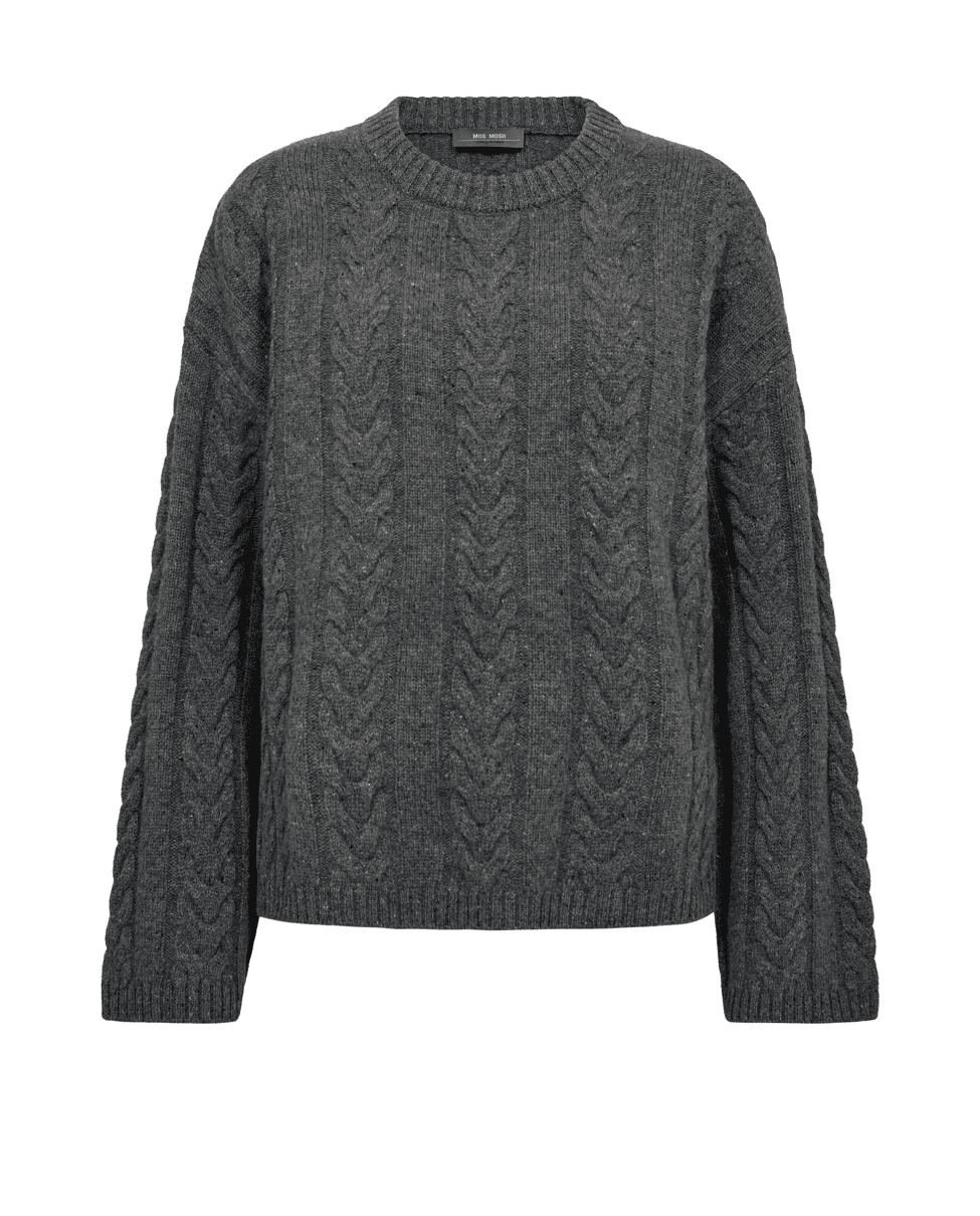 MMBryndis Crewneck Knit – Fijn gebreide trui van Mos Mosh met kabeldetails