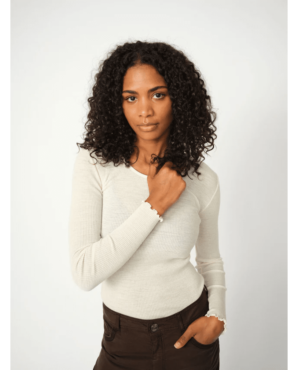 De mix van wol en modal maakt dit shirt heerlijk zacht en ademend – ideaal voor elke dag.