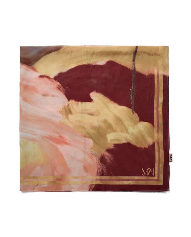 Deze vierkante sjaal met artistieke print geeft je outfit direct een zachte, stijlvolle touch. Draag ‘m los om je nek, in je haar of speels aan je tas voor een persoonlijke twist.