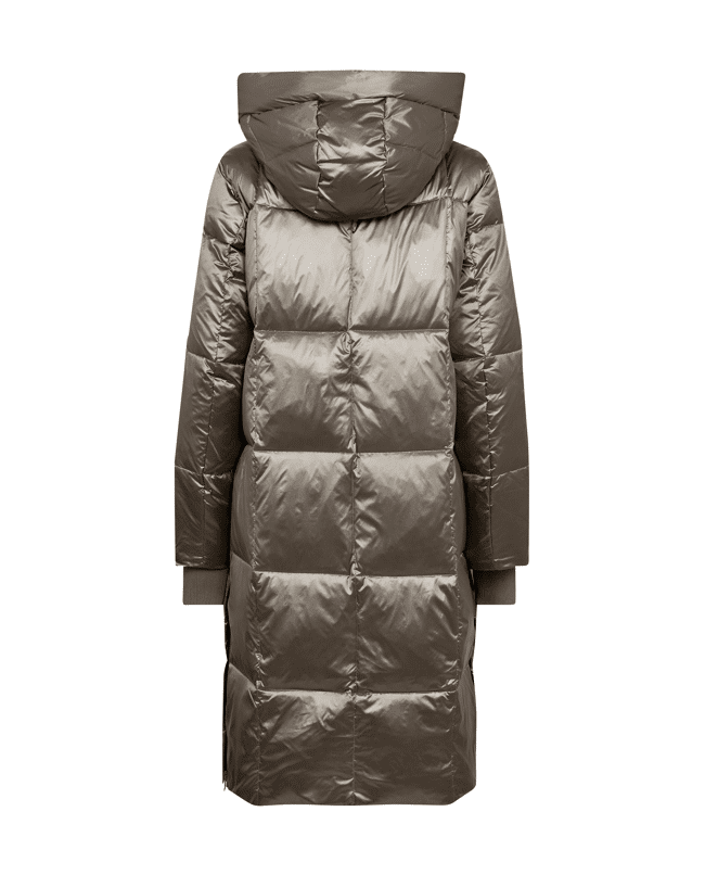 Deze lange donsjas is jouw bondgenoot tijdens koude winterdagen. Met een metallic finish en een comfortabele pasvorm combineert hij warmte met stijl.