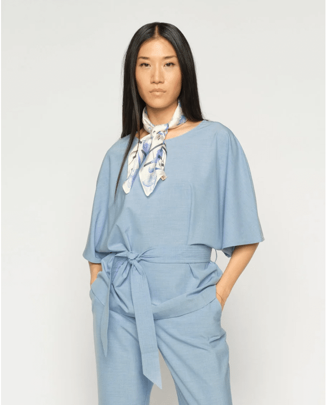 Een luchtige sjaal in brunnera blue met een sierlijke bloemenprint. Ideaal om je outfit net dat beetje extra te geven – of je ‘m nu om je hals knoopt of aan je tas hangt.