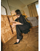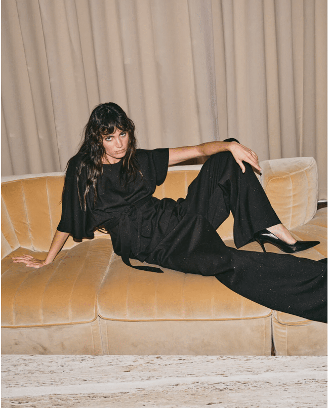 De glitterstof voelt feestelijk aan zonder te overdrijven. Dankzij de strik in de taille creëer je makkelijk een vrouwelijke shape.