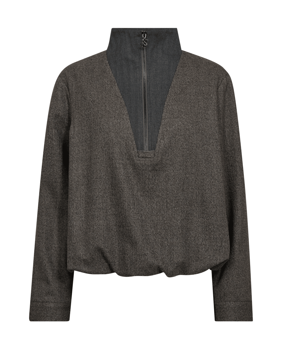 Deze blouse combineert comfort met eigentijdse flair. De hoge kraag met ritsdetail geeft het item een sportieve twist.