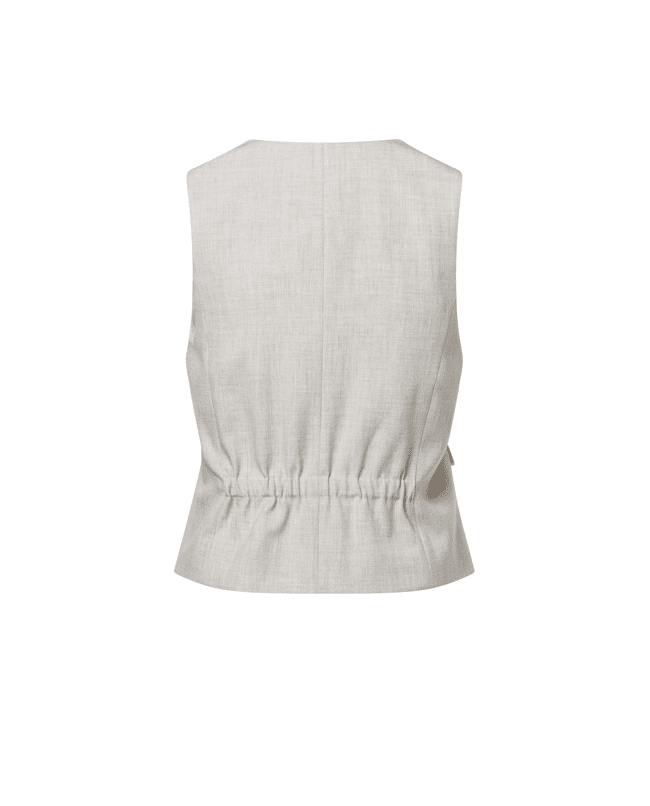 Deze mouwloze blazer in kit melange is een stijlvol alternatief voor je klassieke jasje. Ideaal voor gelaagde looks in het voorjaar of als statement piece bij een co-ord set.