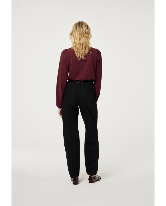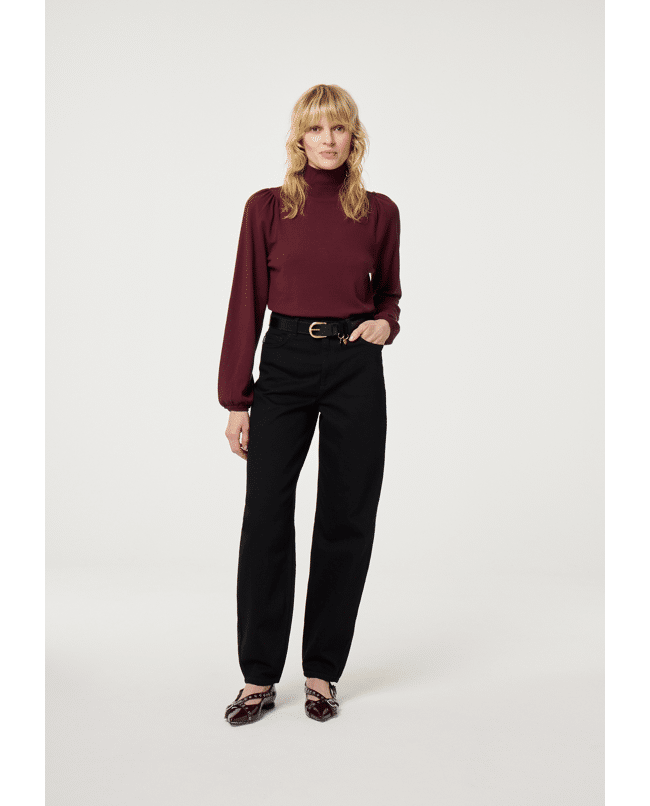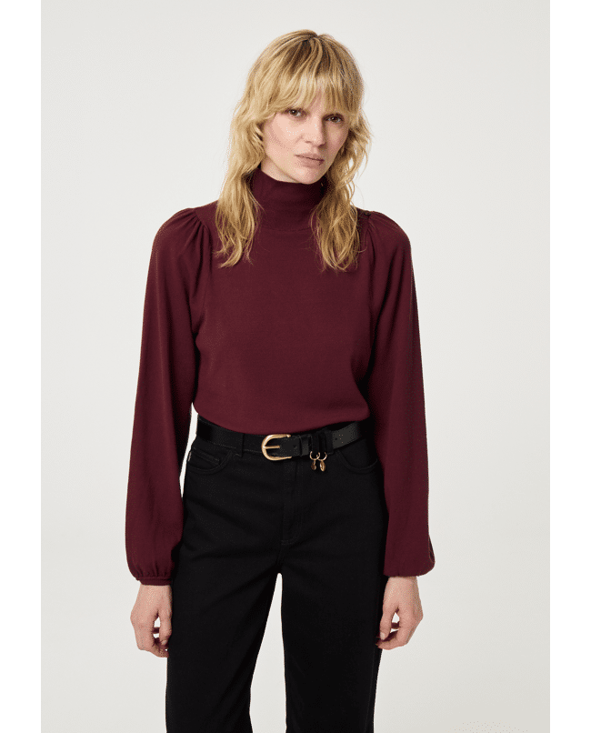 De diepe bordeauxrode tint geeft een luxe en warme uitstraling. Een veelzijdige trui die zowel casual als chic te stylen is.