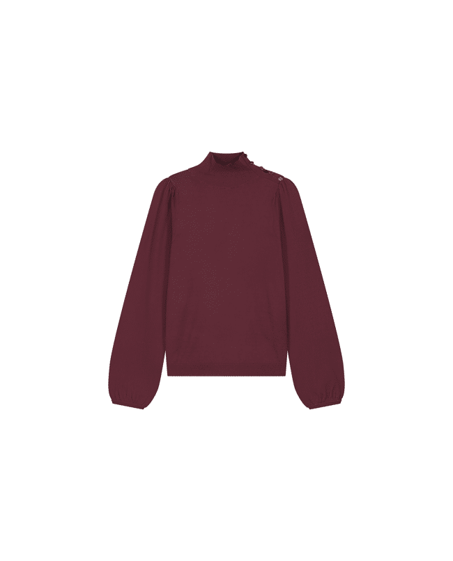 Molly Pullover – Damestrui van Fabienne Chapot met opstaande halslijn, lange mouwen en knoopjes op de schouder