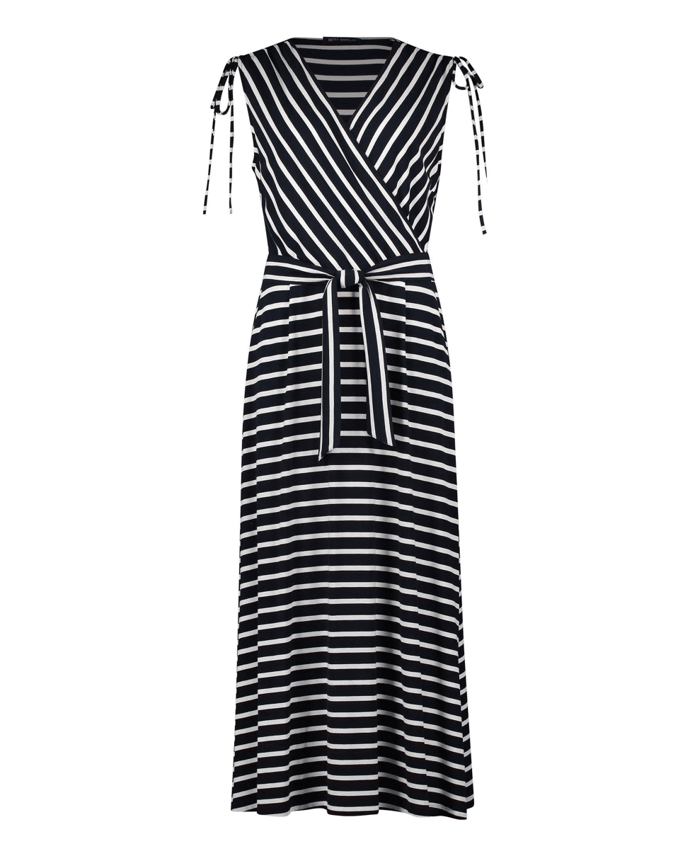 Mouwloze jurk van Betty Barclay met strepen, flatterende V-hals, strikceintuur en bindbandjes op de schouders