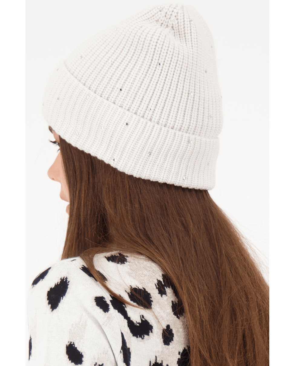 Deze gebreide muts met strassdetails combineert warmte met een vleugje glamour. Ideaal voor frisse herfstdagen of winterse wandelingen.
