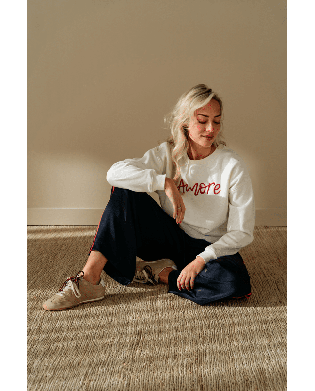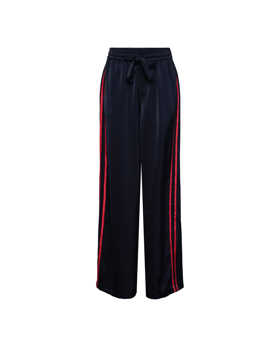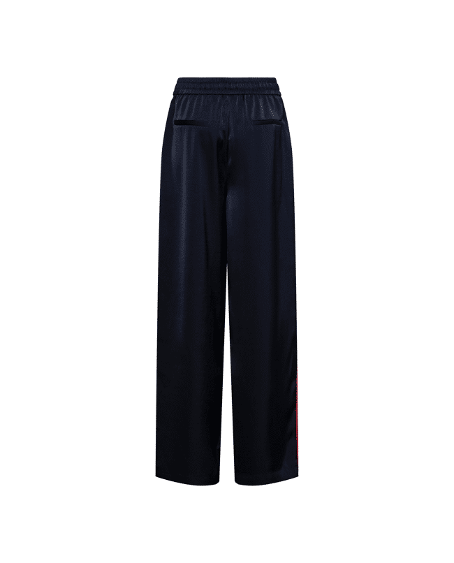 Deze navy broek met rechte pijpen is een comfortabele keuze met een elegante uitstraling. De bijpassende ceintuur in dezelfde stof maakt de look helemaal af.