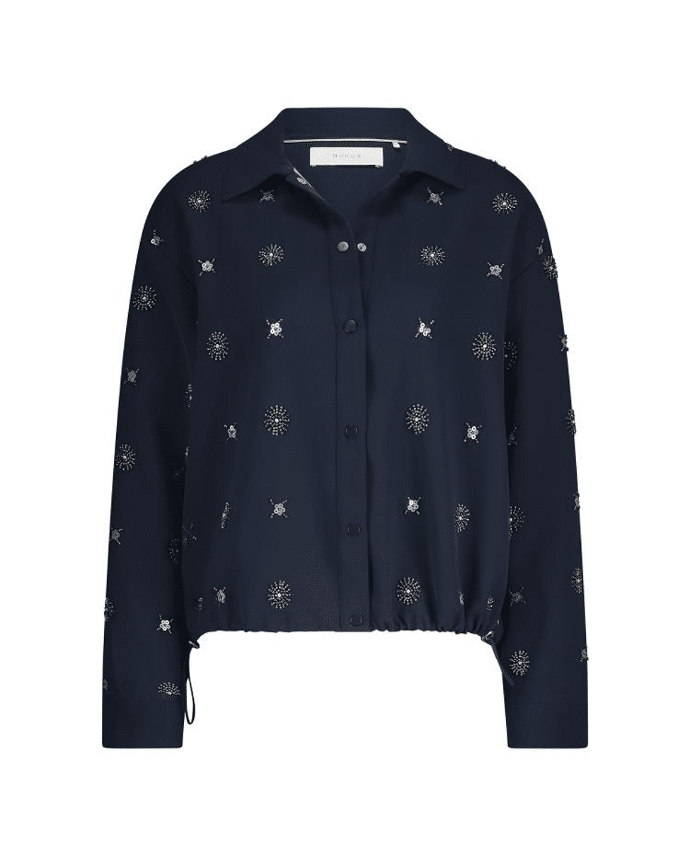 Newport Embroidery - Damesblouse van Nukus met borduursel, elastiek in de zoom, knoopsluiting en lange mouwen