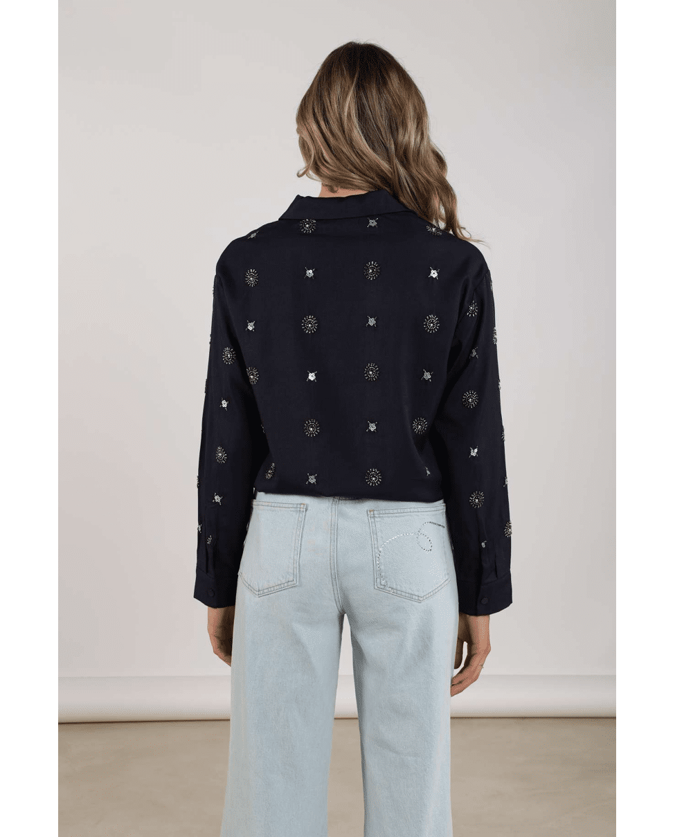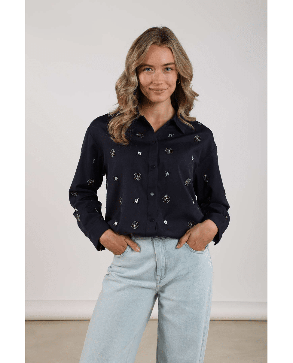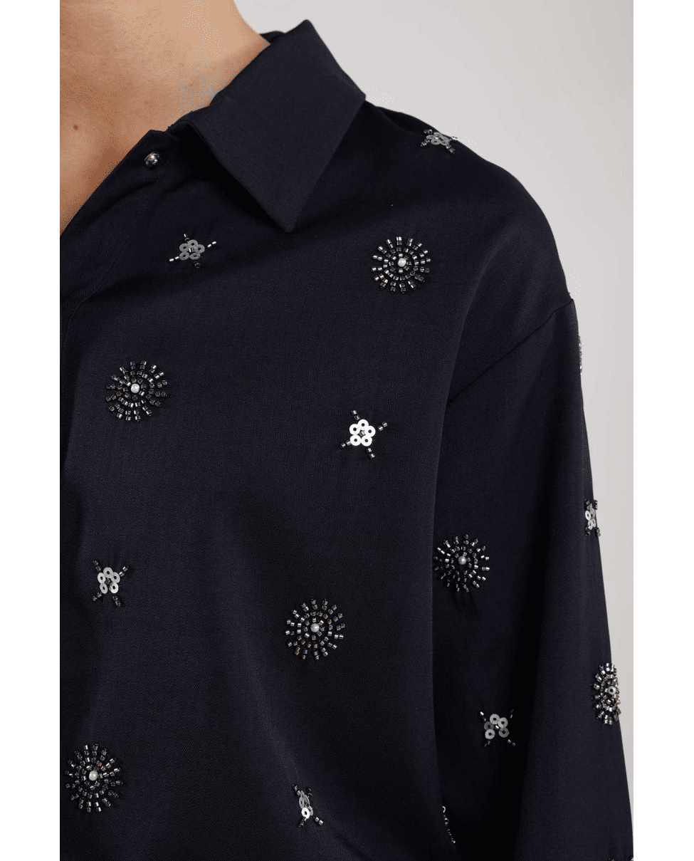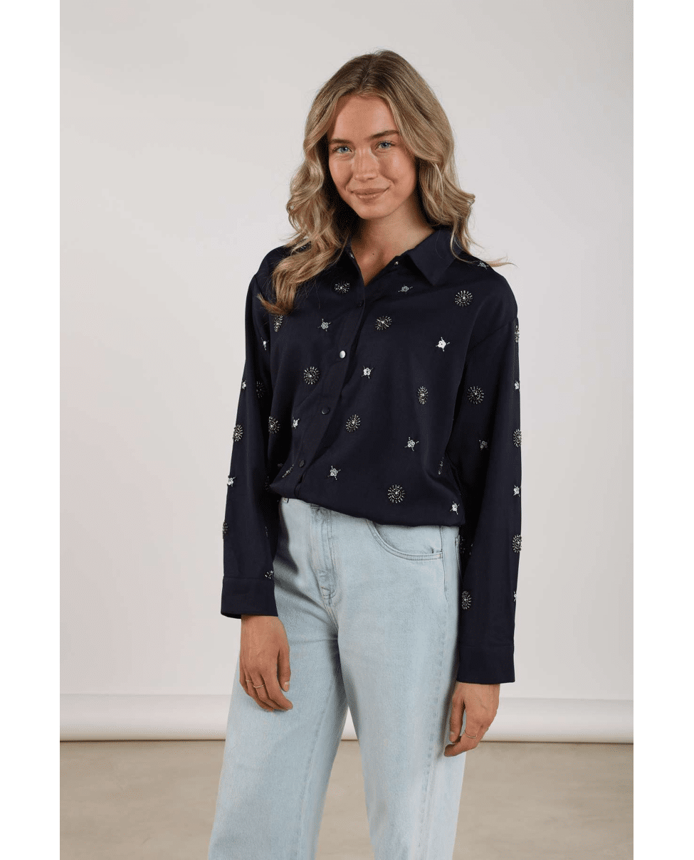 De glanzende embroidery geeft een verfijnde en feestelijke uitstraling – zonder over the top te zijn.
