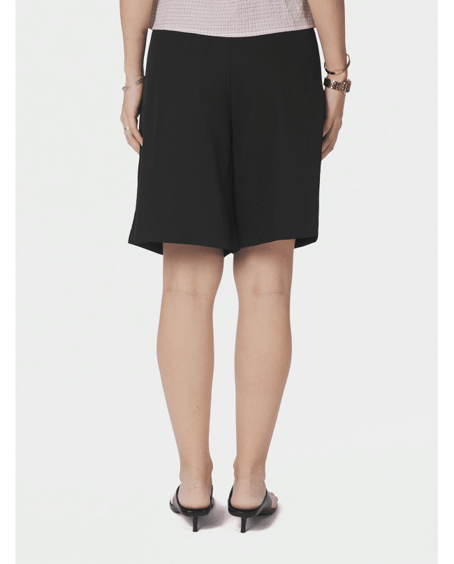De combinatie van het geklede model en de soepele stof maakt deze zwarte bermuda verrassend veelzijdig. Draag ‘m met een blouse en hakken of juist casual met een knit en sandalen.