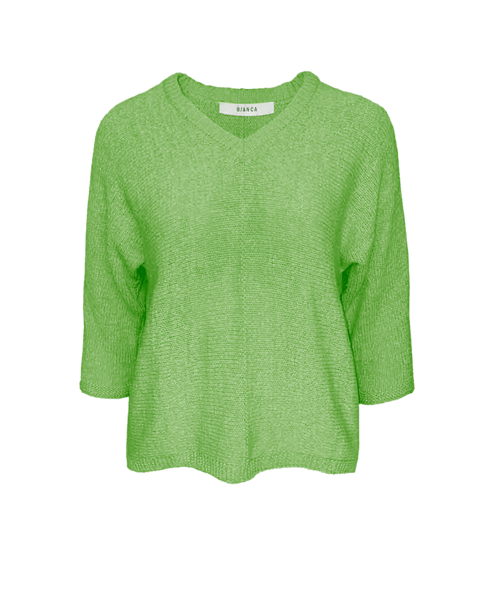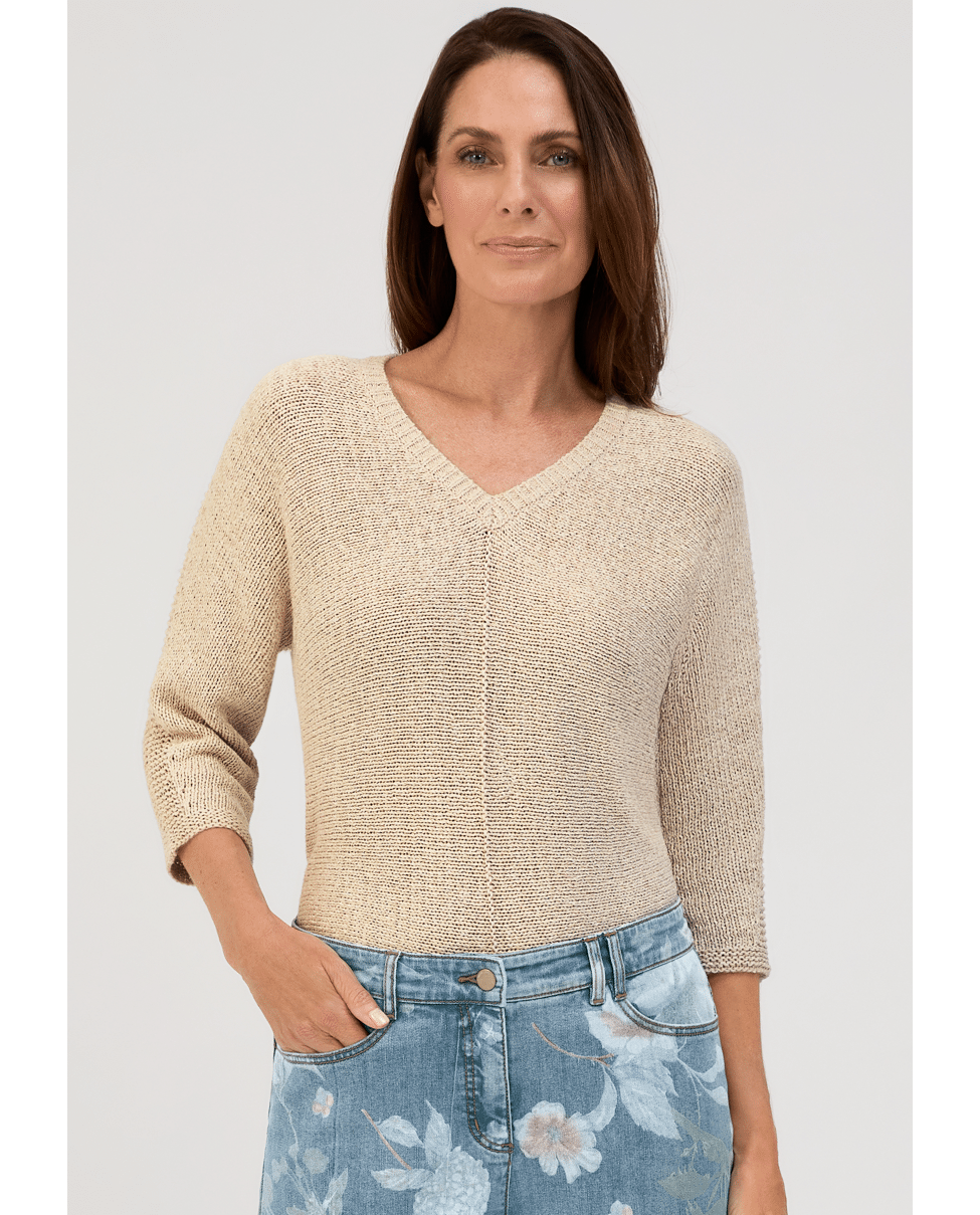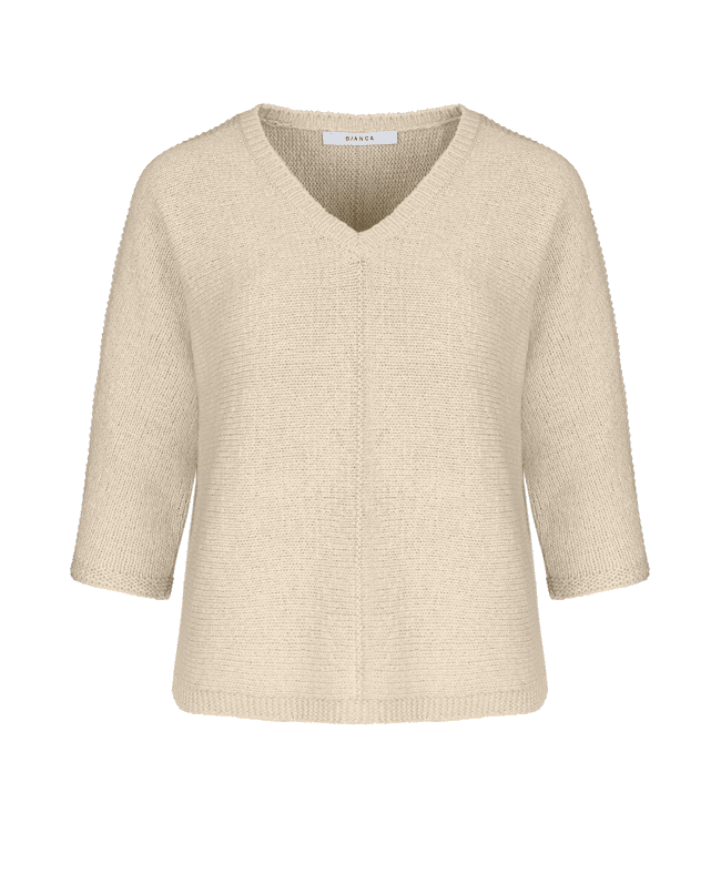 Deze gebreide trui van Bianca is perfect voor het voorjaar. De V-hals en ¾ mouwen geven een ontspannen silhouet met een verfijnde uitstraling.
