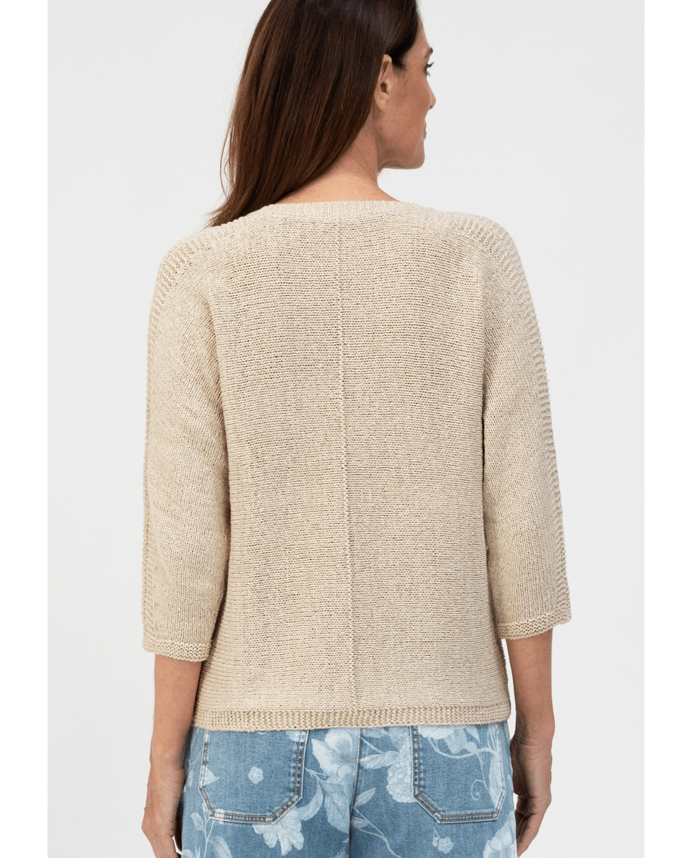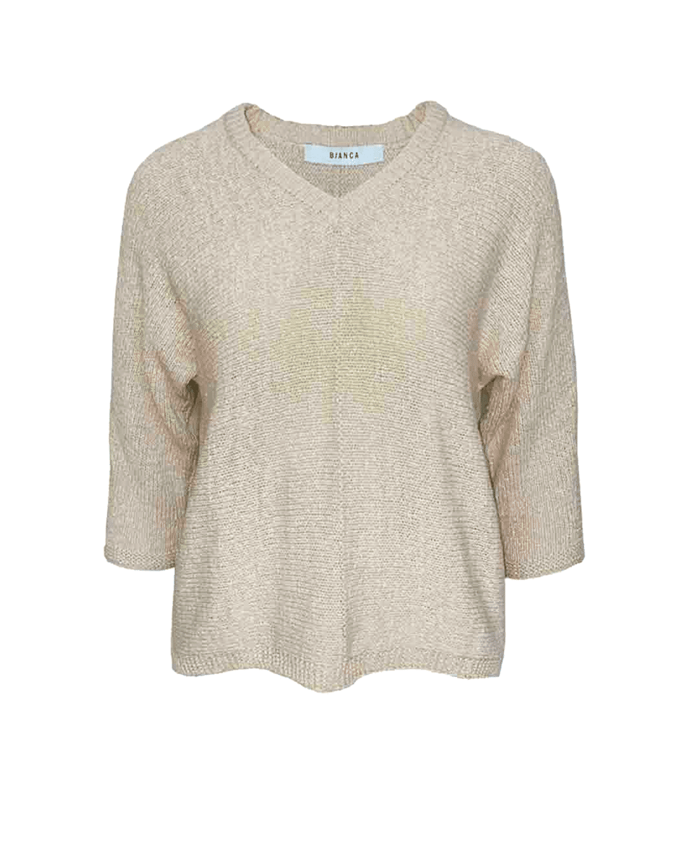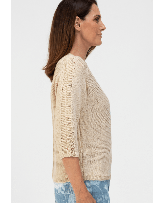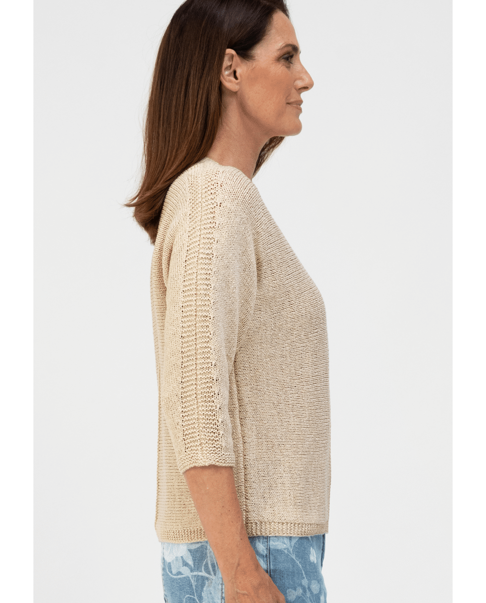 Deze gebreide trui van Bianca is perfect voor het voorjaar. De V-hals en ¾ mouwen geven een ontspannen silhouet met een verfijnde uitstraling.