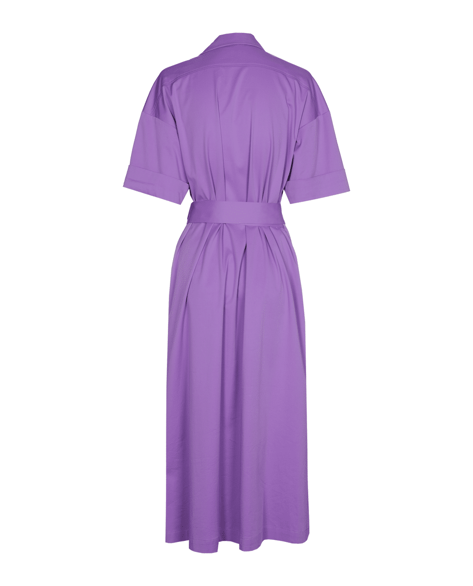 De combinatie van het overslagsilhouet, de zachte kleur en de steekzakken maakt deze jurk zowel praktisch als vrouwelijk.