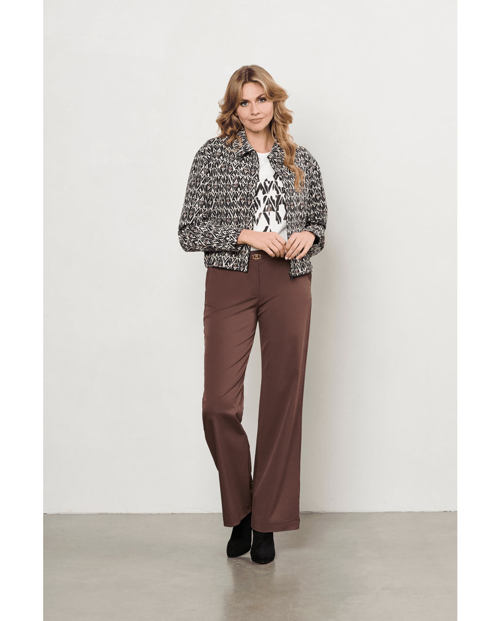Een licht en sportief jack met print. De PALOMA GRAPHIC TRAVEL jas van &Co Woman is uitgevoerd in comfortabele travelkwaliteit en afgewerkt met elastische boorden. Ideaal voor een actieve dag of onderweg.