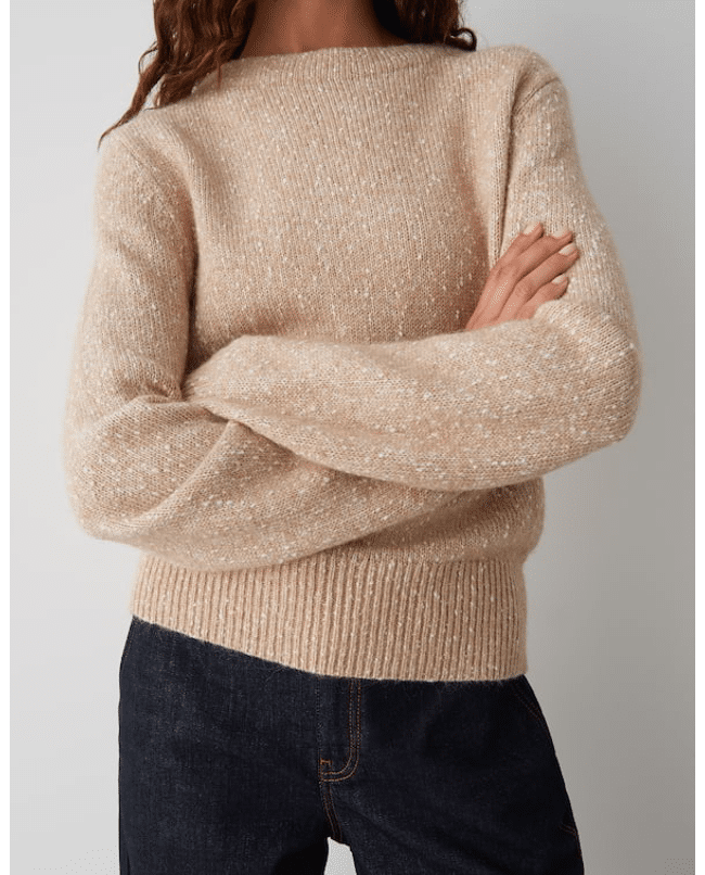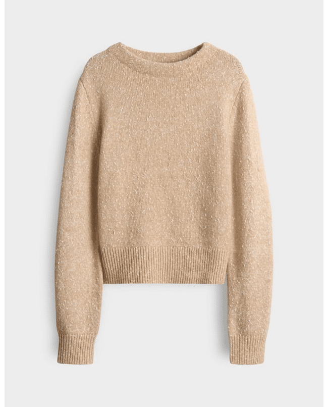 Panep – Gebreide damestrui van Opus met tweekleurig effectgaren, boothals en lange mouwen