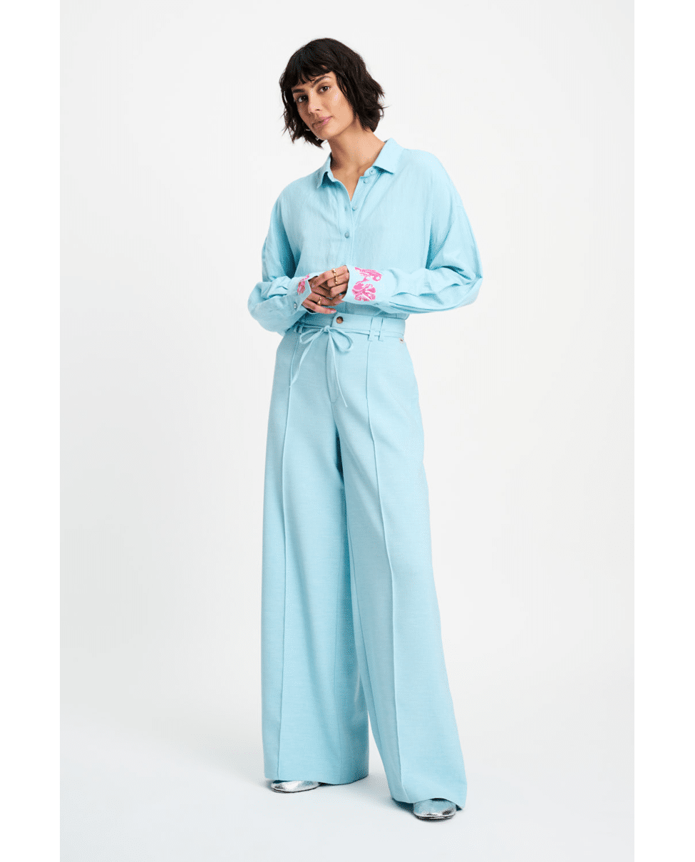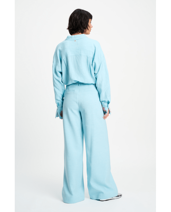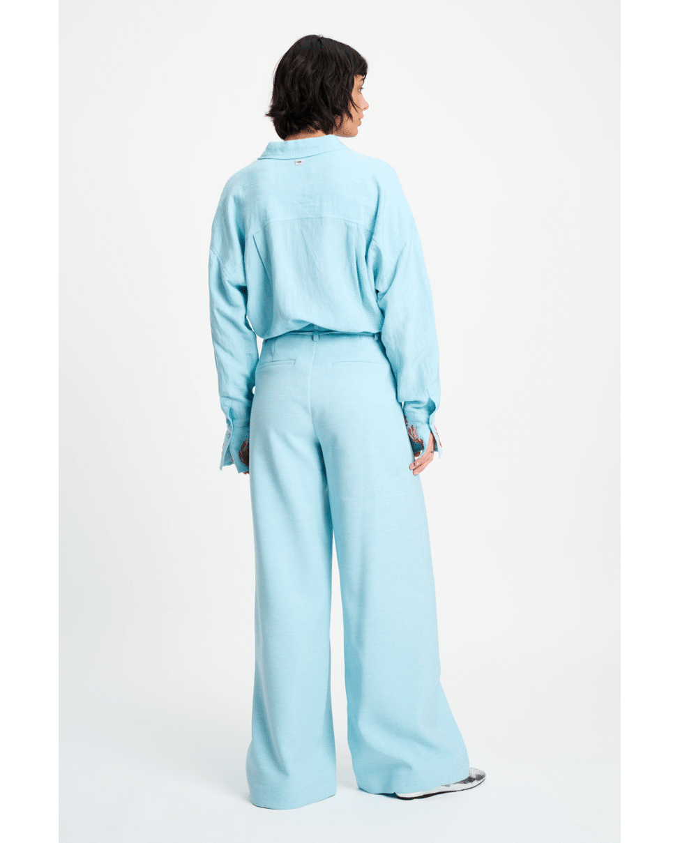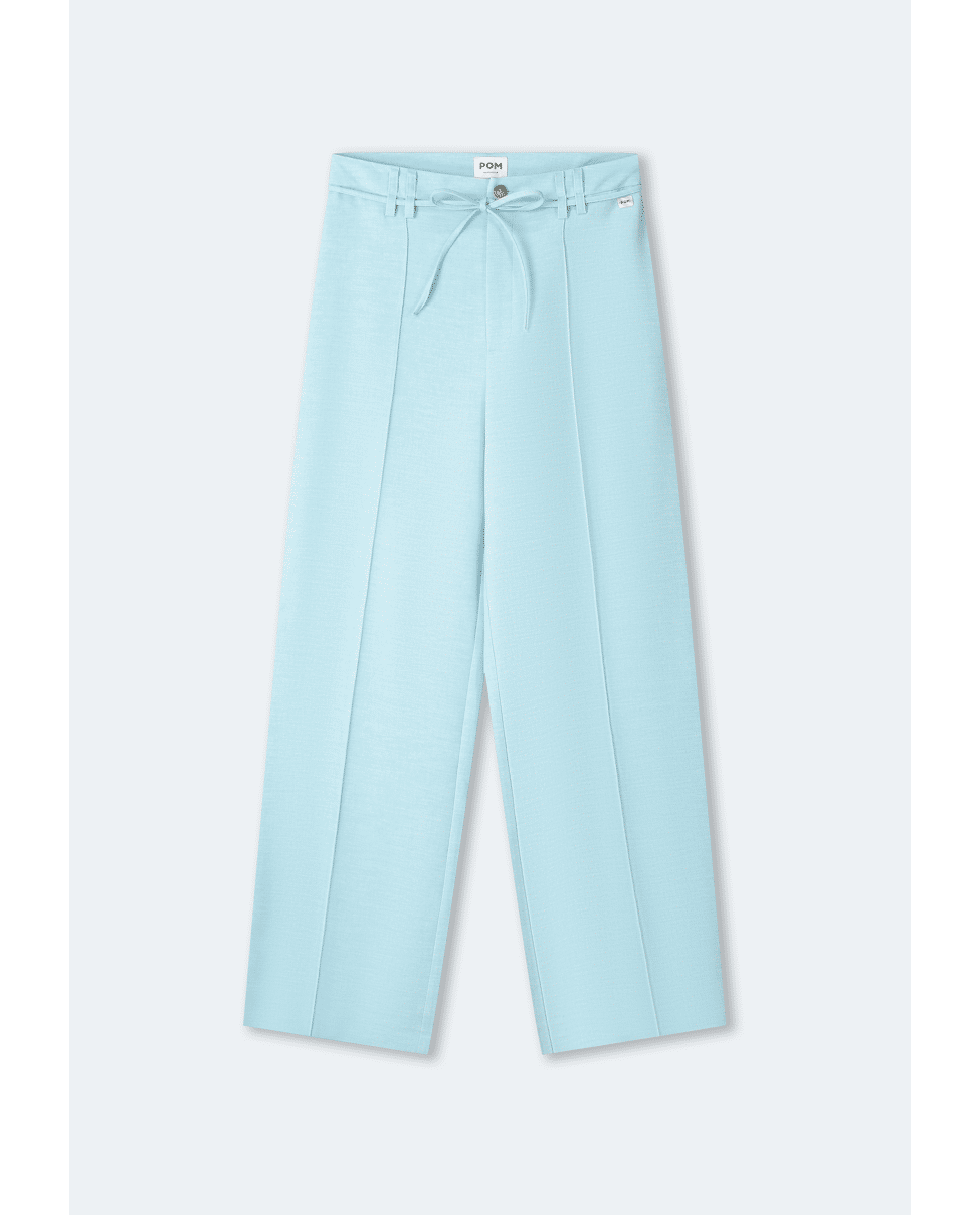 PANTS - Jess Blue Mist broek van POM Amsterdam met wijde rechte pijpen