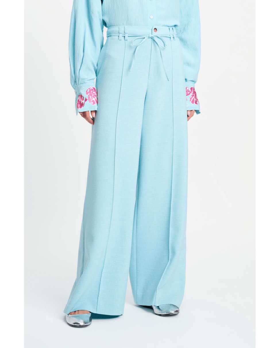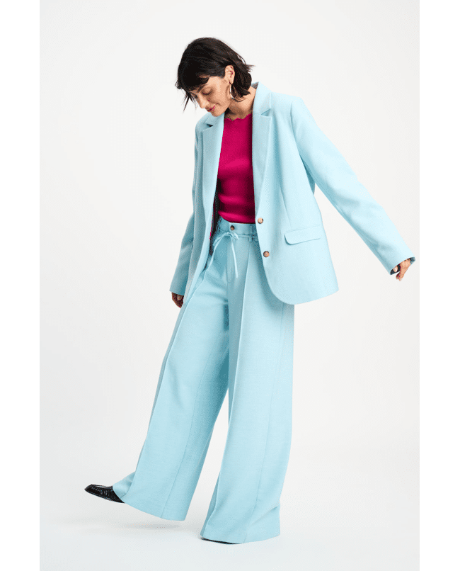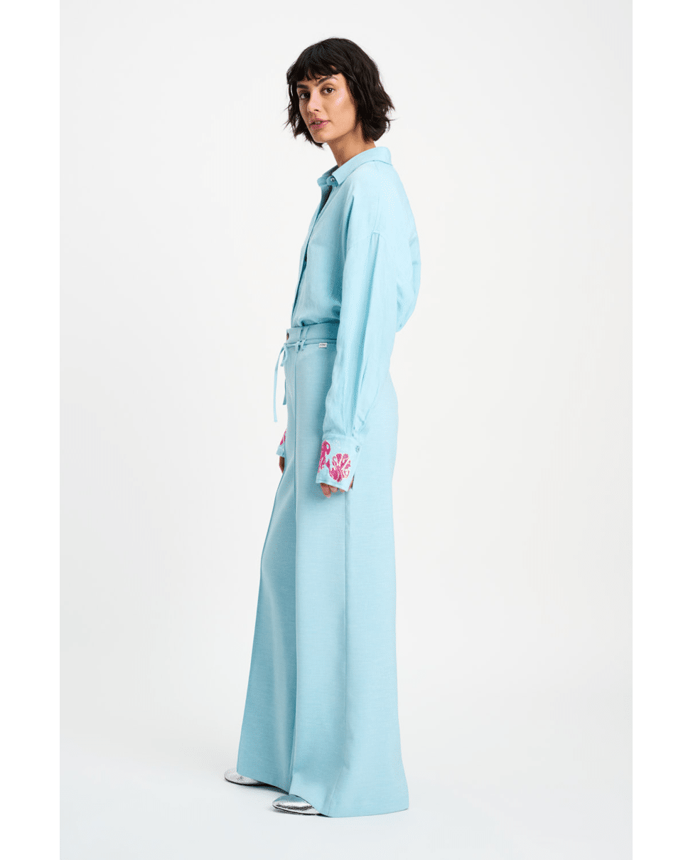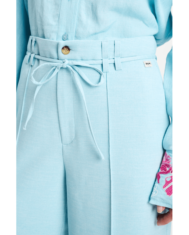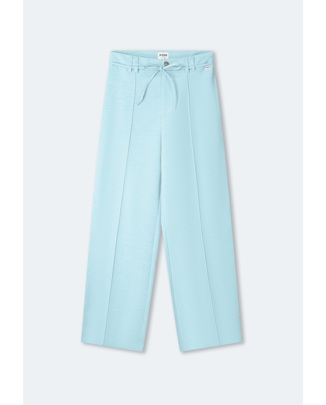 PANTS - Jess Blue Mist broek van POM Amsterdam met wijde rechte pijpen