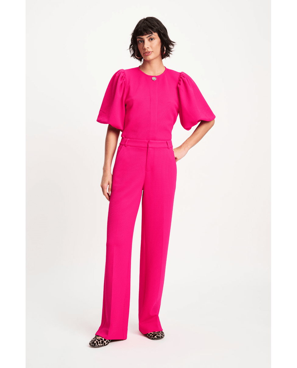 Deze felroze pantalon met rechte pijp is een moderne klassieker voor wie graag opvalt met stijl. Perfect voor kantoor, een etentje of gewoon als powerlook.