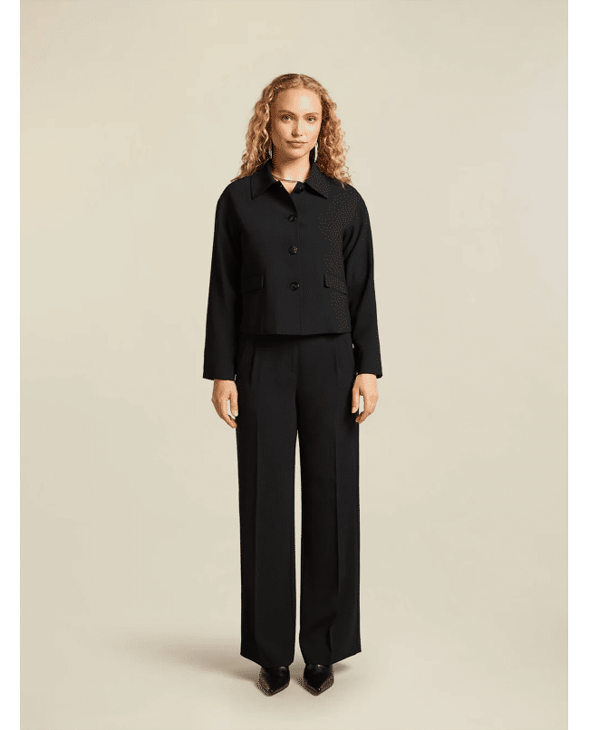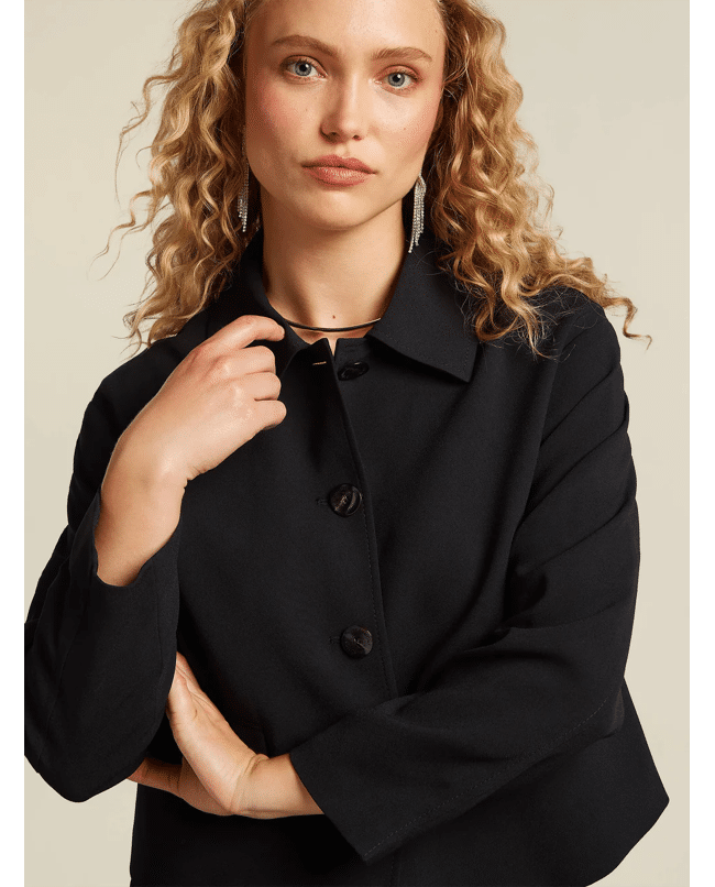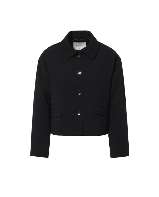 De korte lengte en minimalistische knopen maken deze blazer stijlvol in zijn eenvoud – tijdloos met een eigentijdse twist.