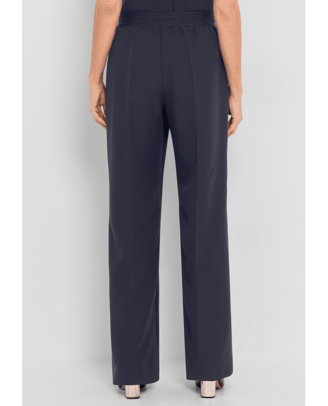 De elastische tailleband zorgt voor een mooie fit én bewegingsvrijheid. De scherpe persvouw maakt het geheel vrouwelijk en gekleed.