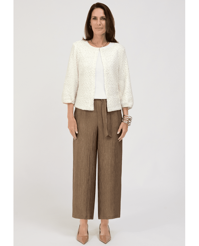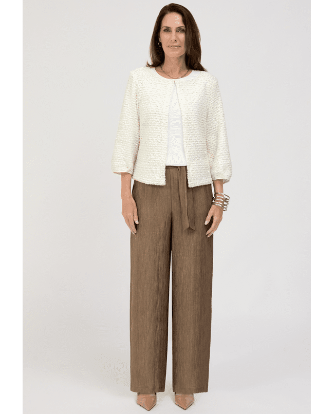 De PARIGI damesbroek van BIANCA is een stijlvolle bruine broek met een ontspannen uitstraling. De rechte pijpen en het striklint in de taille geven ‘m een moderne, vrouwelijke touch. Perfect voor een comfortabele lente- of zomerlook, van werkdag tot weekend.