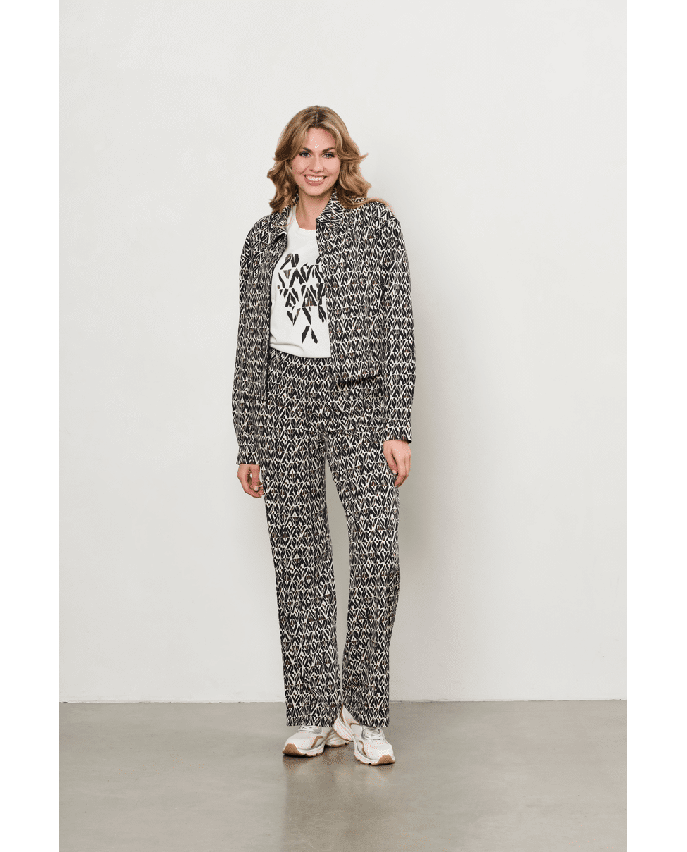 Een comfortabele broek met karakter. De PATRICE travel pants van &Co Woman is uitgevoerd in een lichte stretchkwaliteit met grafische allover print. Ideaal om je outfit net wat meer pit te geven.